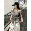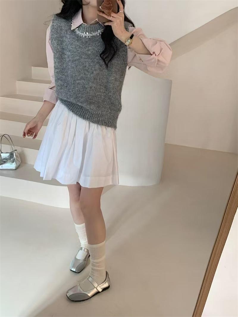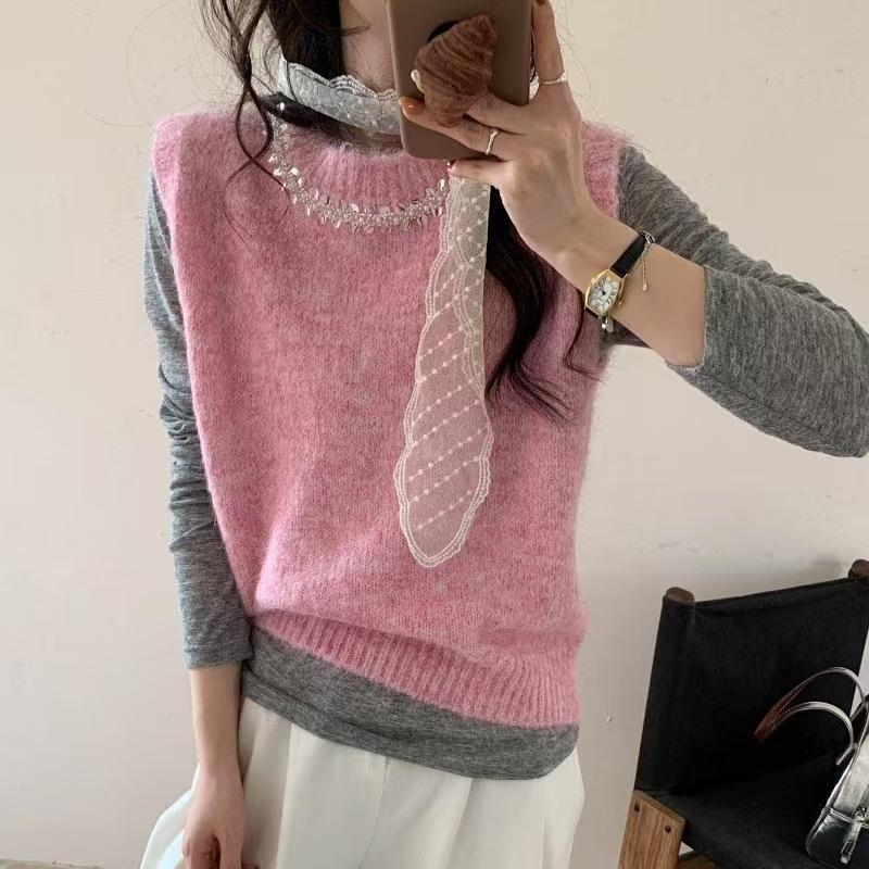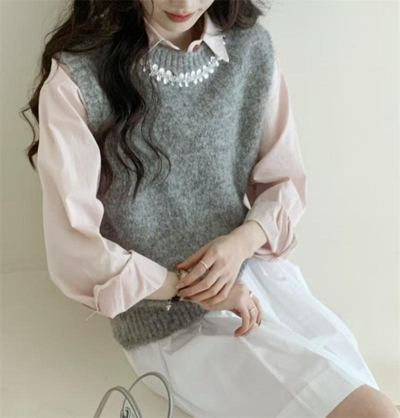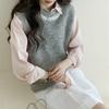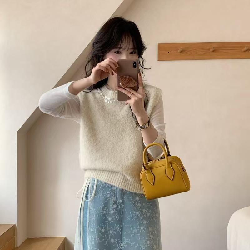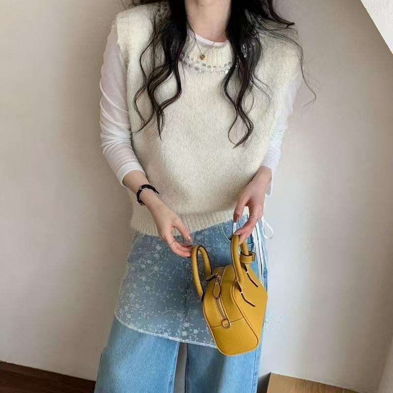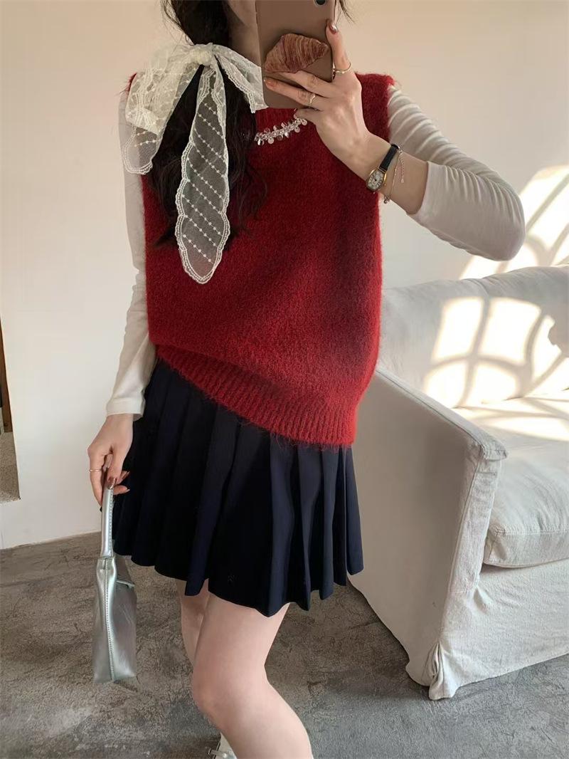 Primavera 2025 Nuevo Chaleco de Punto de Industria Pesada para Mujer Cuello Redondo Apilado Suave Ceroso Estilo Lazy Pequeño Dulce Top sin Mangas