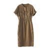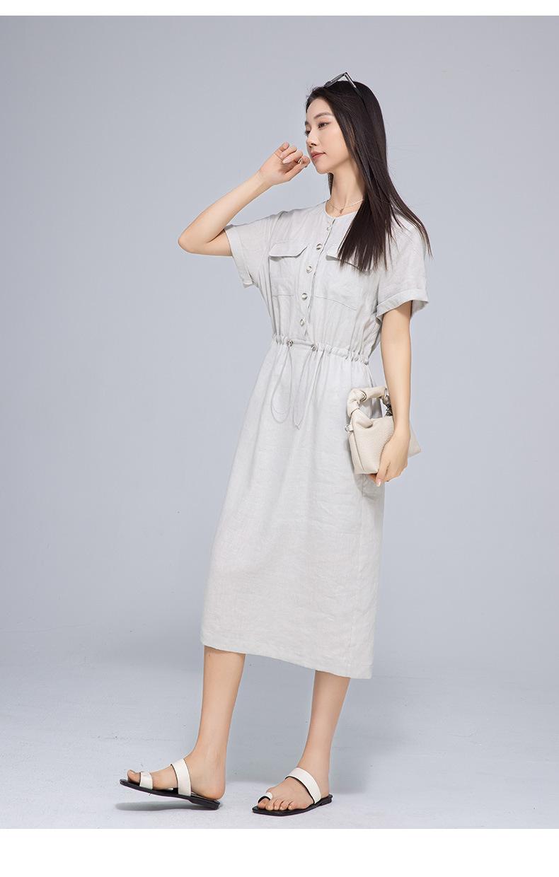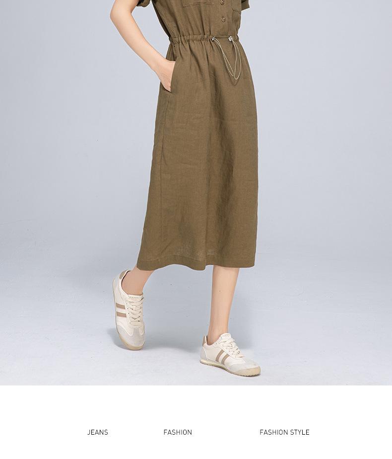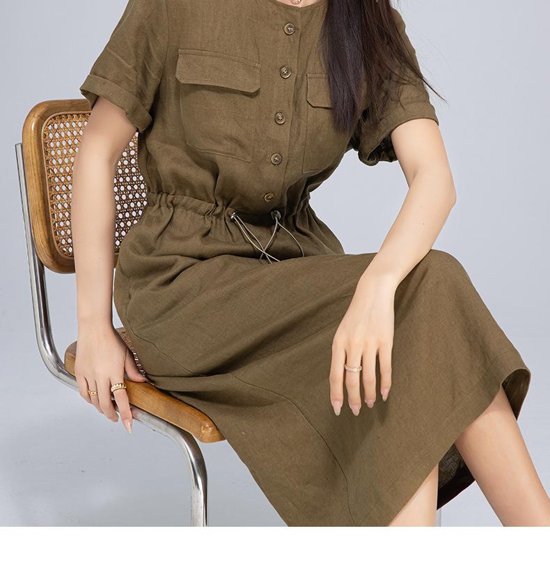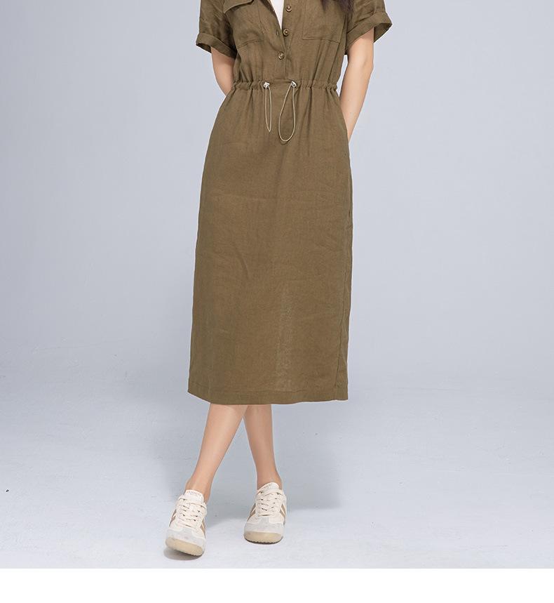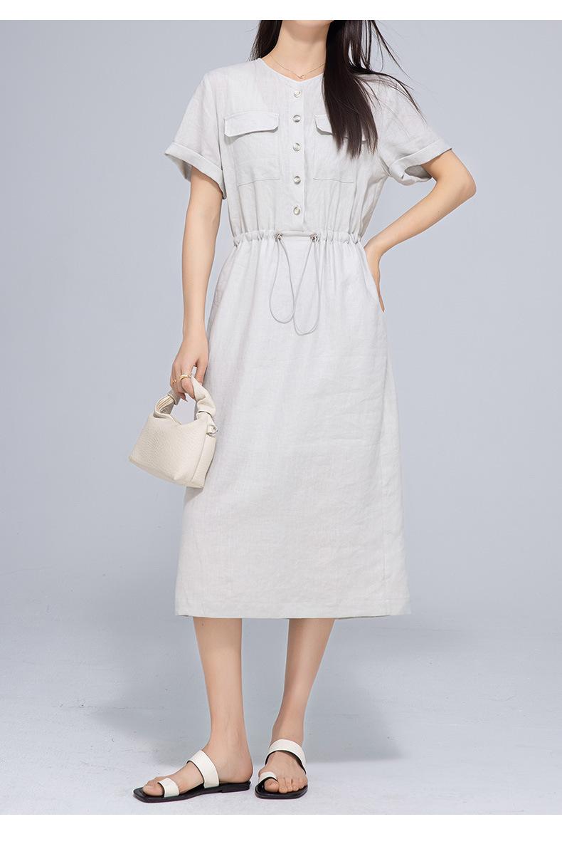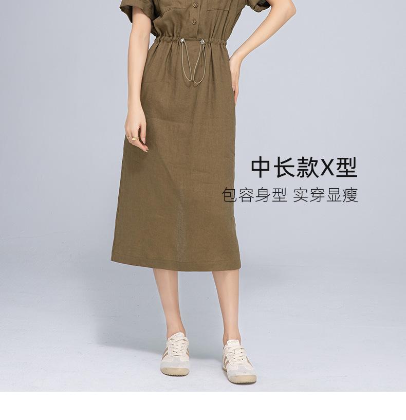 Vestido de lino Xinge para mujer, verano 2025, nuevo, holgado, de manga corta, con cordón ajustable en la cintura.