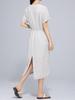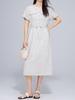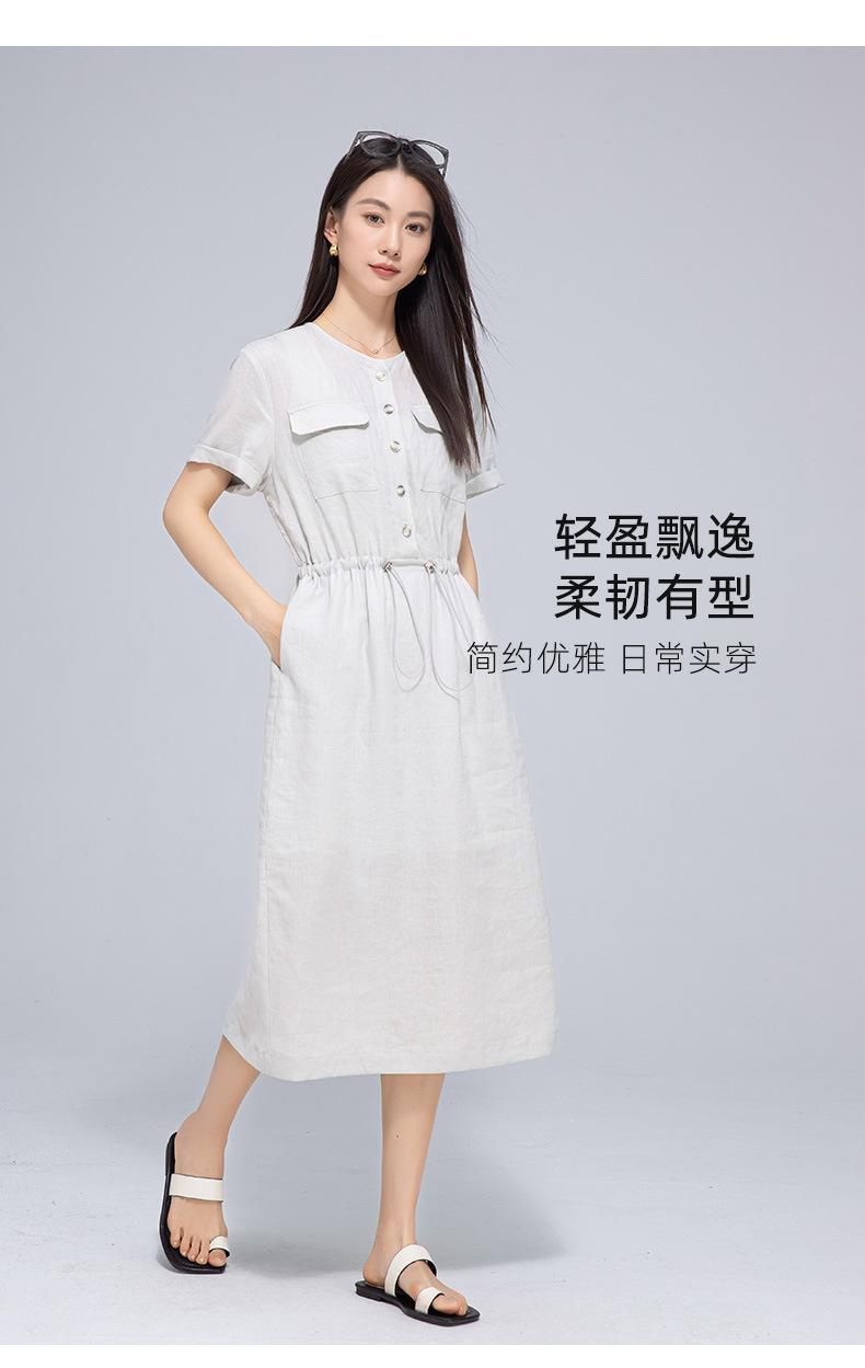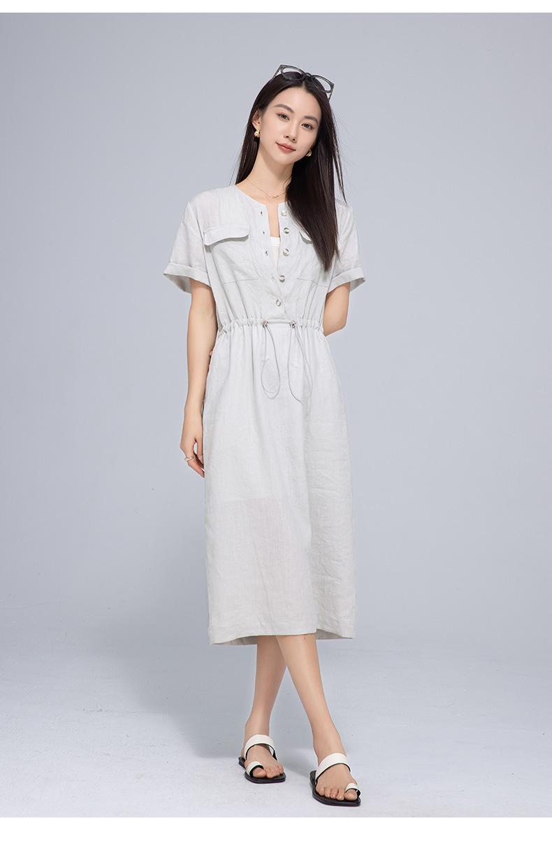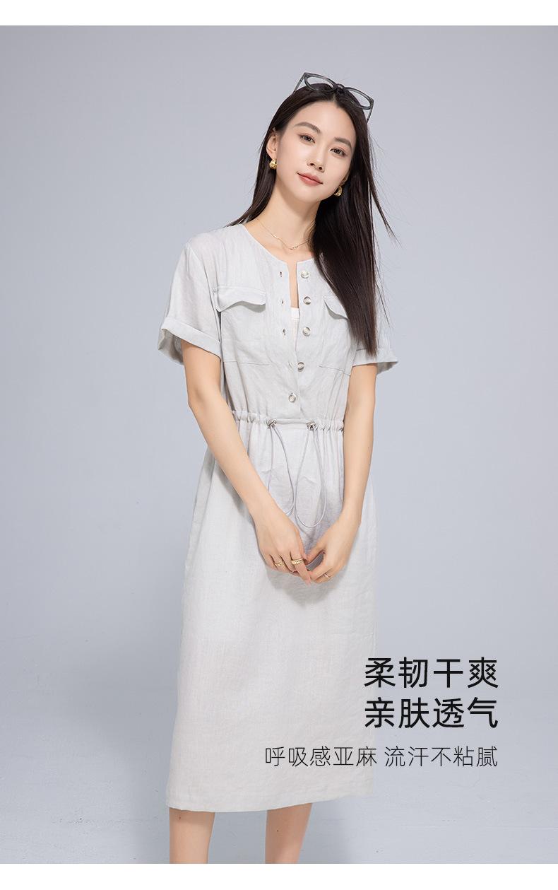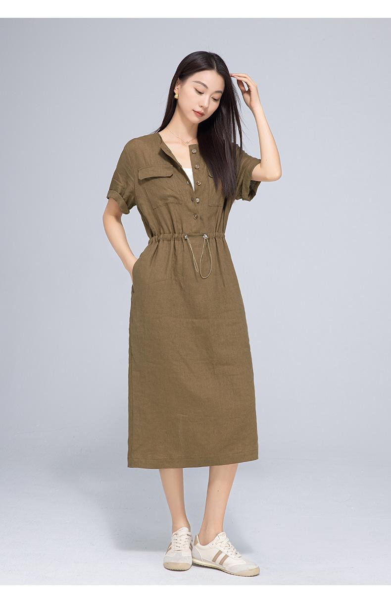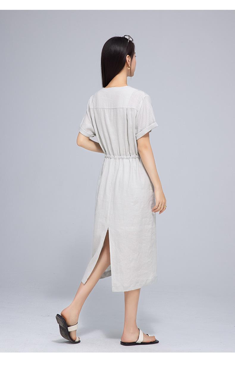 Vestido de lino Xinge para mujer, verano 2025, nuevo, holgado, de manga corta, con cordón ajustable en la cintura.