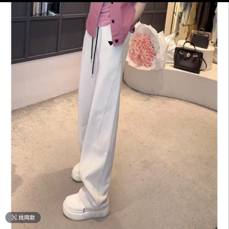 Pantalones casuales de cintura alta y pierna ancha para mujer, primavera 2025, nuevos pantalones holgados adelgazantes de color liso, pantalones rectos que combinan con todo.