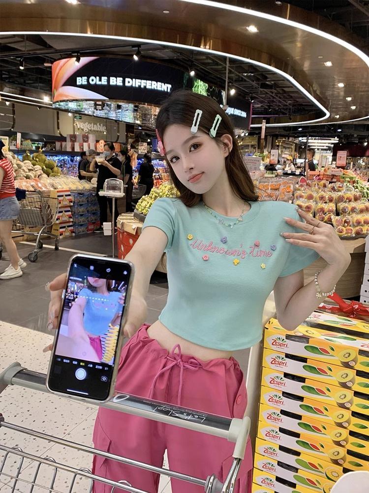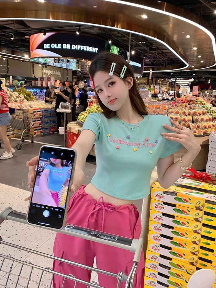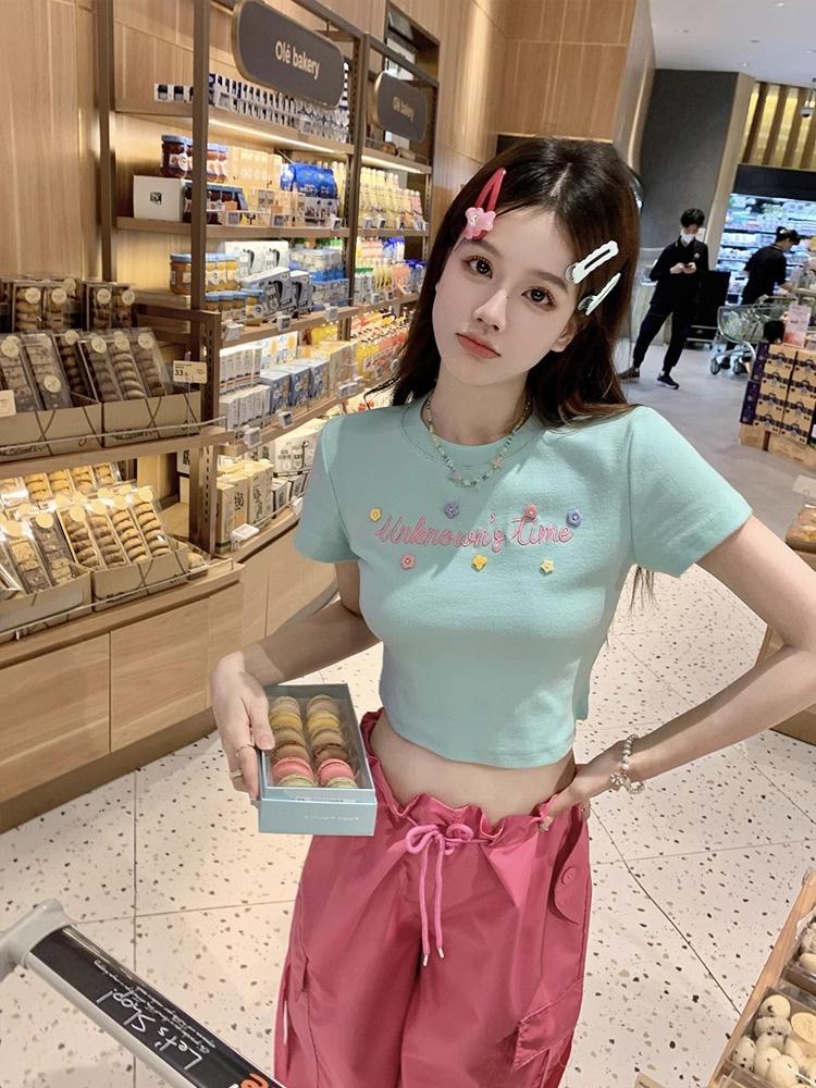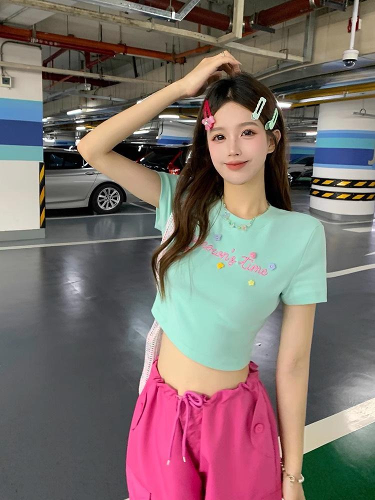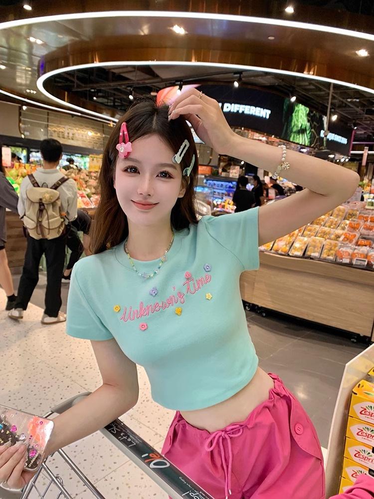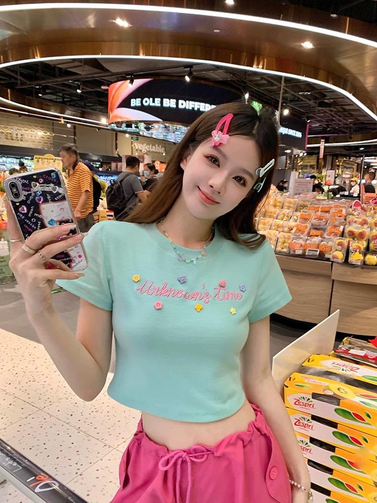 Camiseta de Mujer Ajustada Diseño Nuevo Ajustada Combinable Cintura Ceñida Cintura Ceñida Chica Picante Sexy Deseo Puro Moderna Elegante