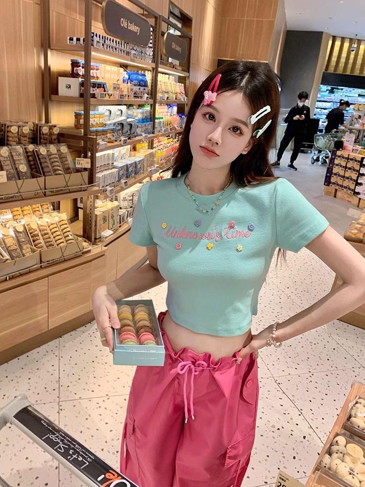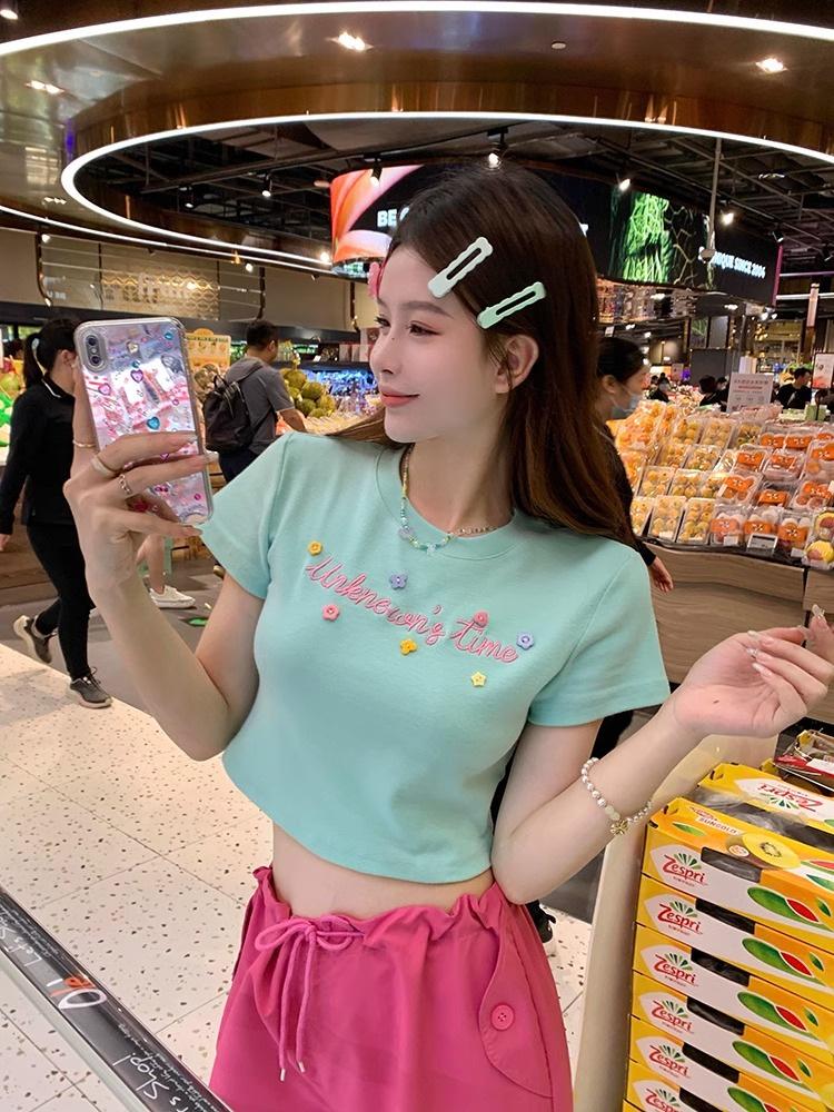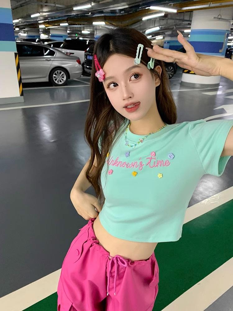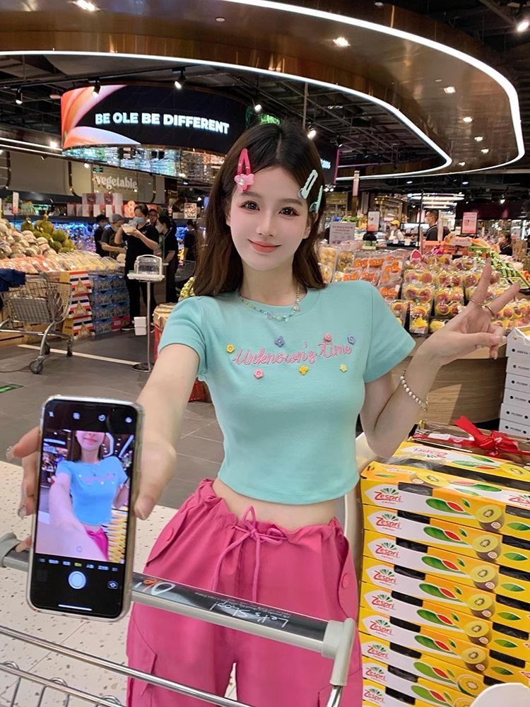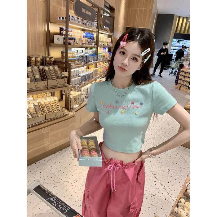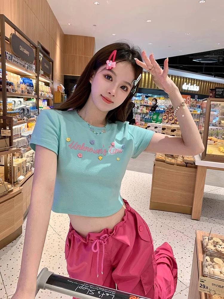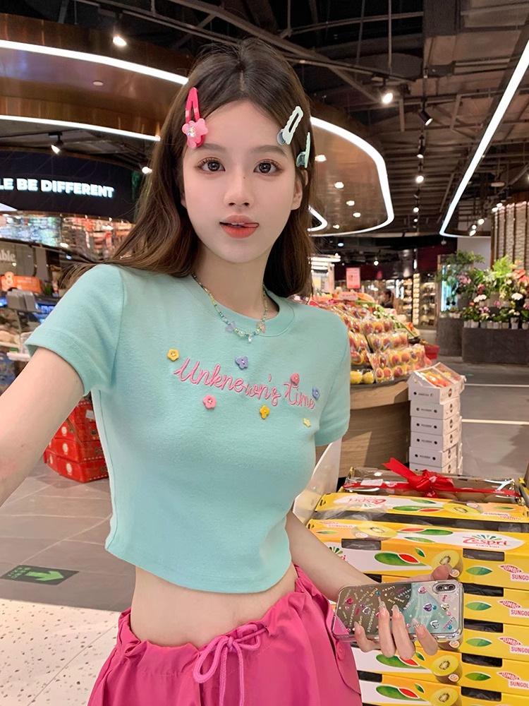 Camiseta de Mujer Ajustada Diseño Nuevo Ajustada Combinable Cintura Ceñida Cintura Ceñida Chica Picante Sexy Deseo Puro Moderna Elegante