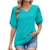 Camiseta de manga corta con cuello en V y burbuja hueca para mujer, primavera y verano 2025, comercio exterior transfronterizo de Amazon Europa y Estados Unidos