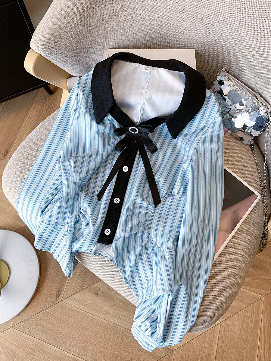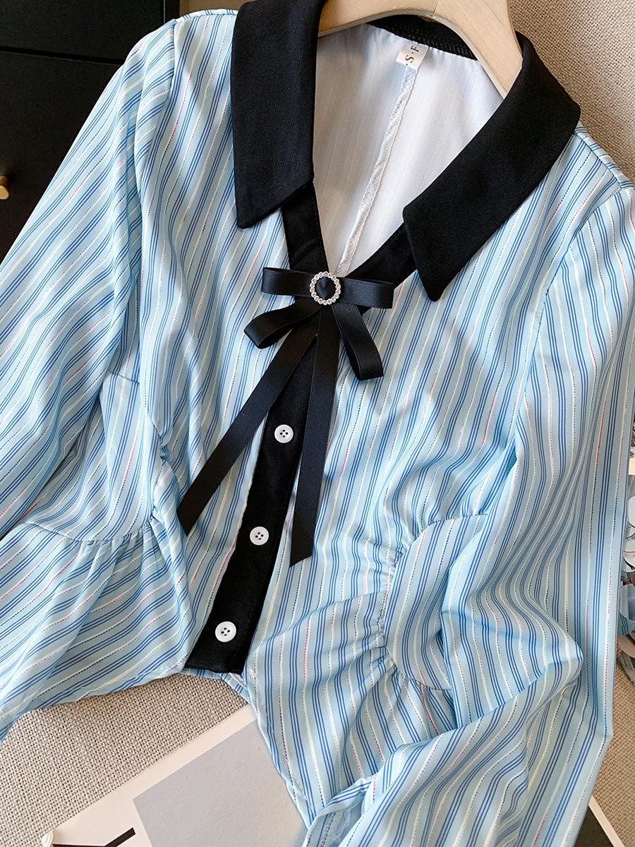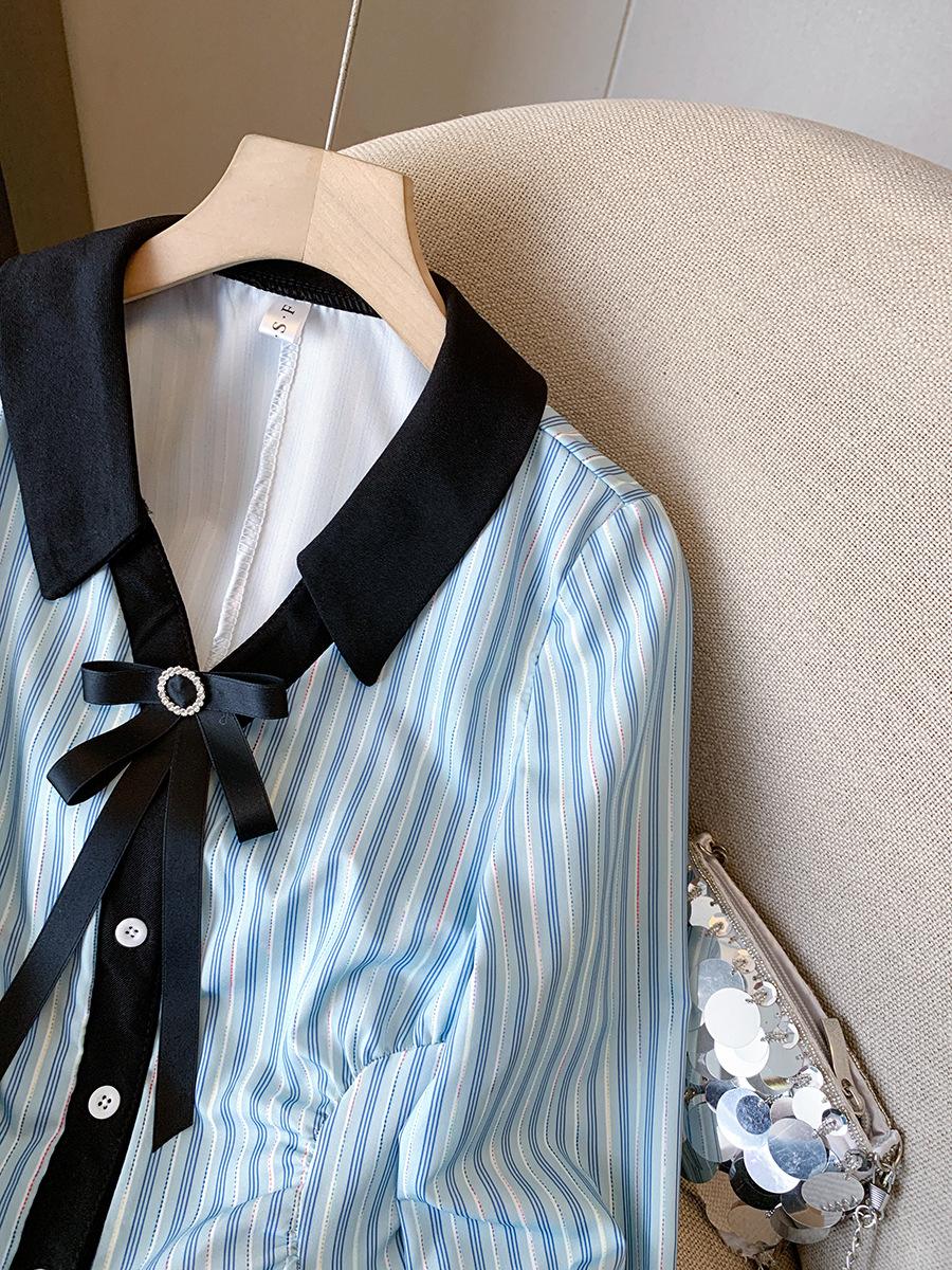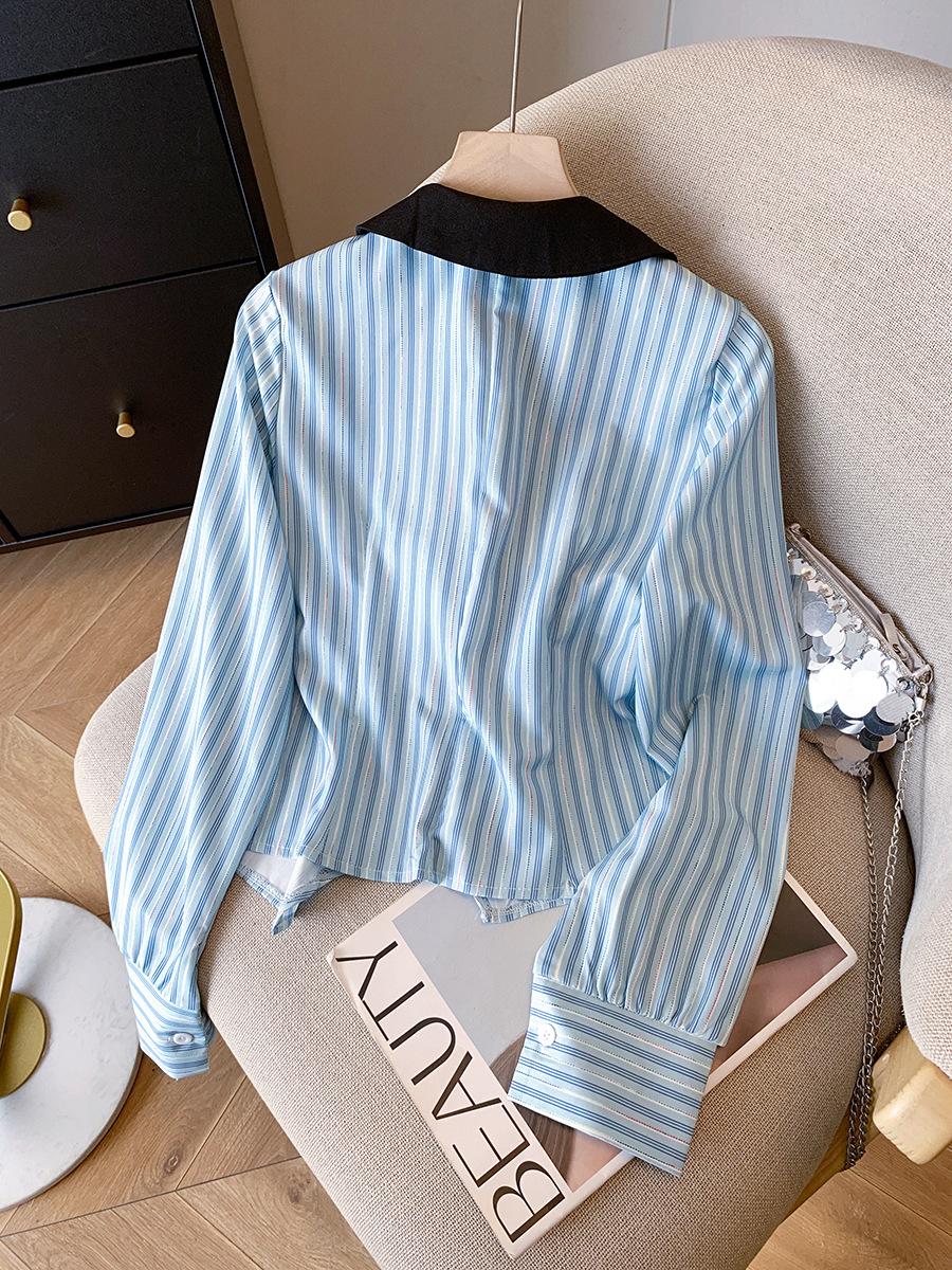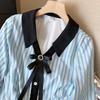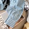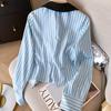 Camisa a rayas de tiro real para mujer, nueva primavera 2025, ropa de mujer azul de manga larga, estilo holgado, camisa de temperamento para mujer