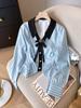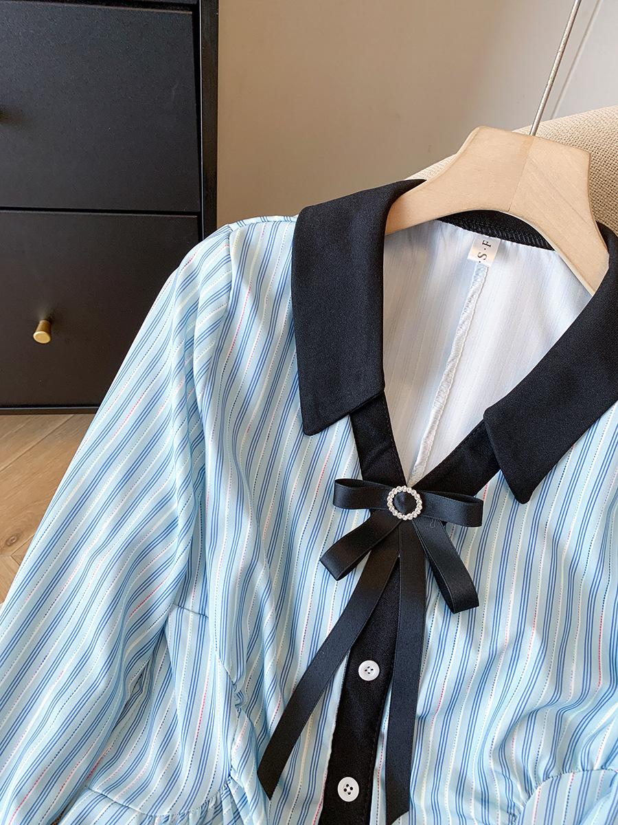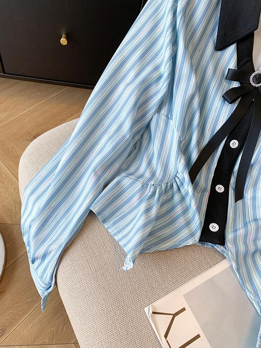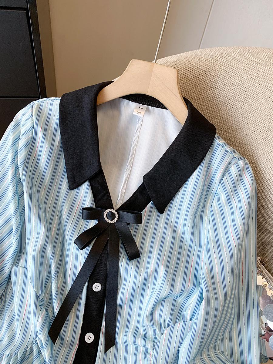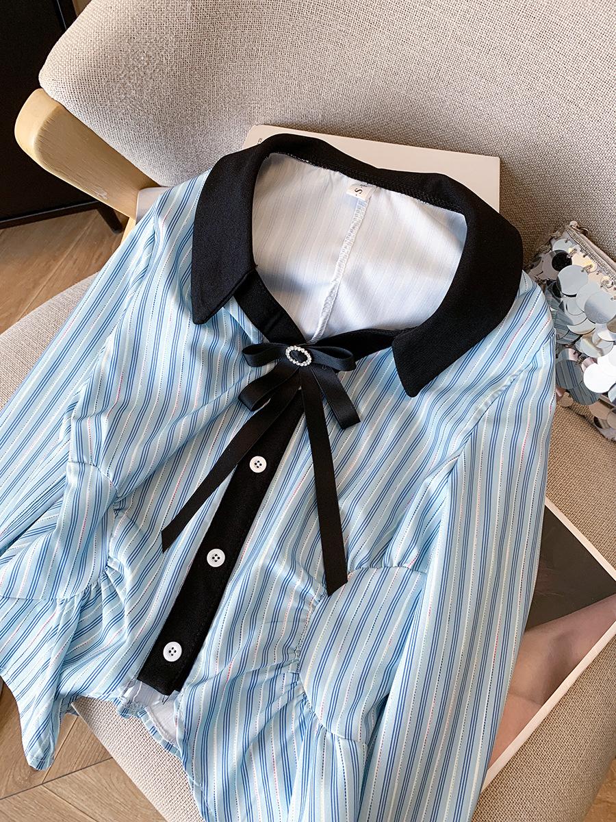 Camisa a rayas de tiro real para mujer, nueva primavera 2025, ropa de mujer azul de manga larga, estilo holgado, camisa de temperamento para mujer