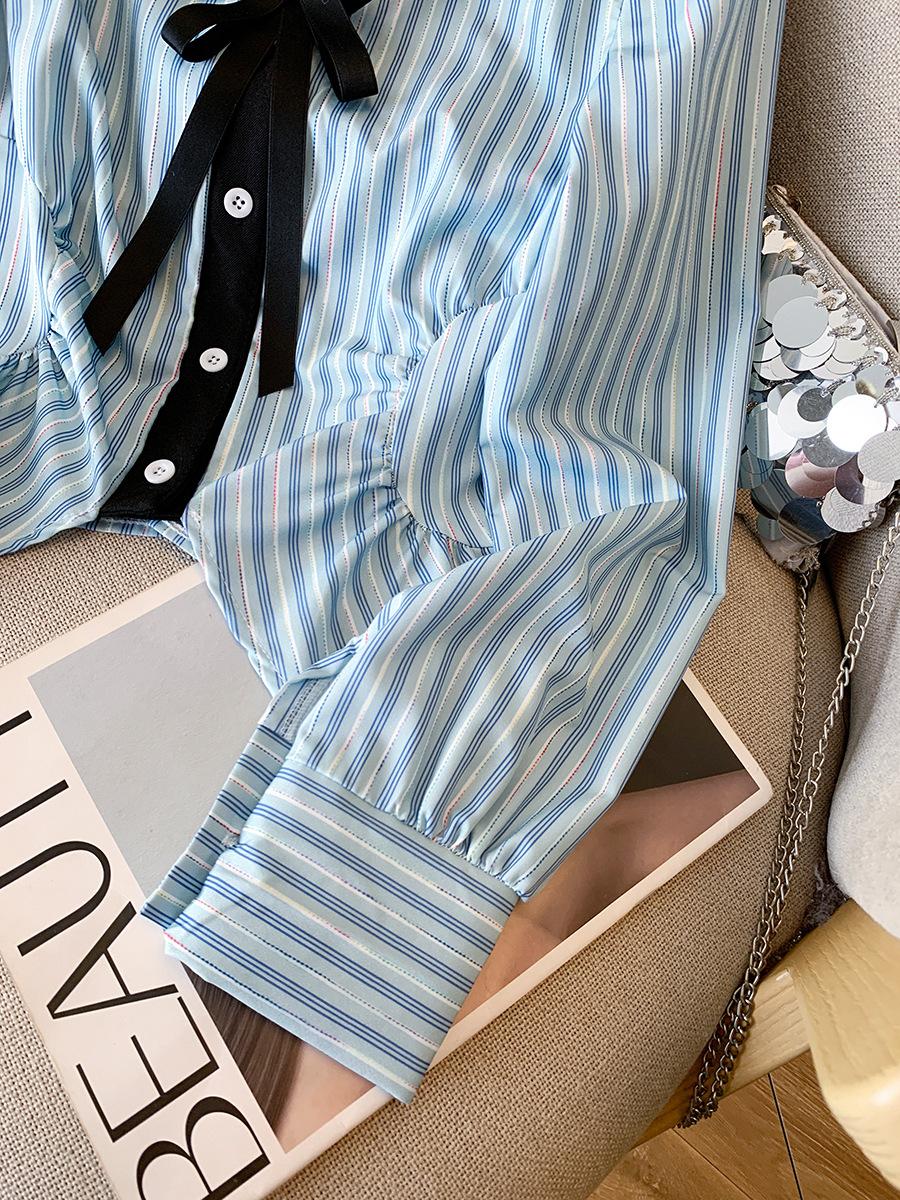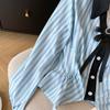 Camisa a rayas para mujer, nueva primavera 2025, azul, manga larga, estilo holgado, elegante.