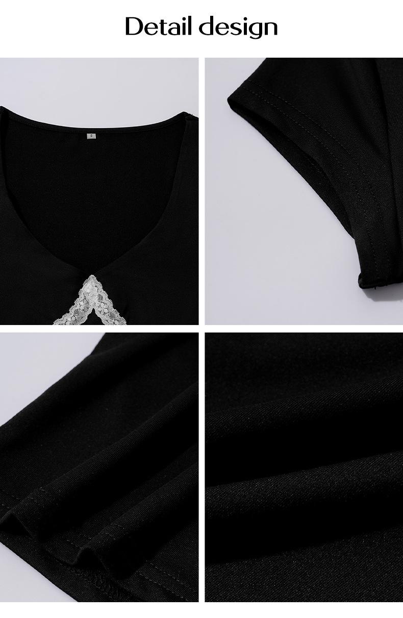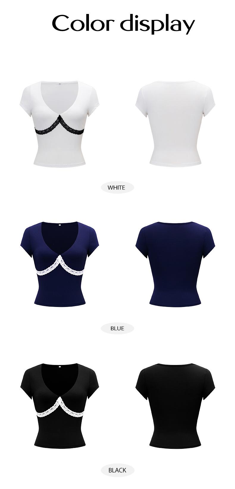 Compra Diyun 2025 Primavera y Verano Europeo y Americano Amazon Y2K Tops de Manga Corta para Mujer Sexy Ajustado Tejido Contraste Blanco y Negro al por mayor en Joom.pro