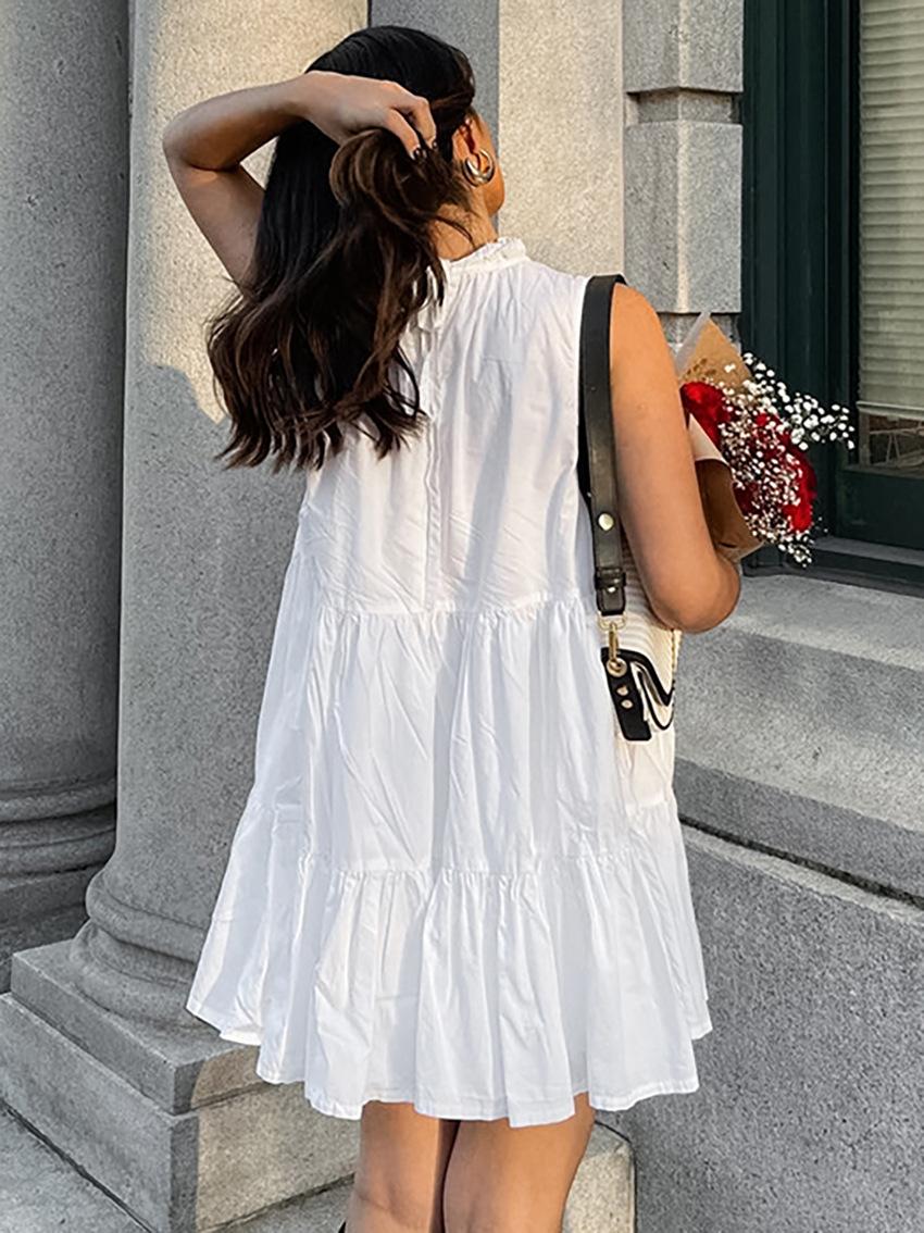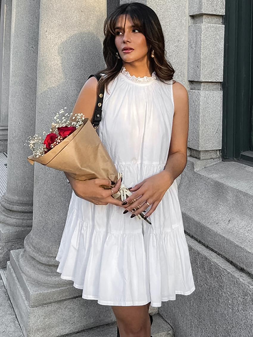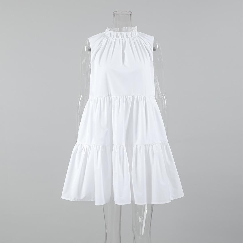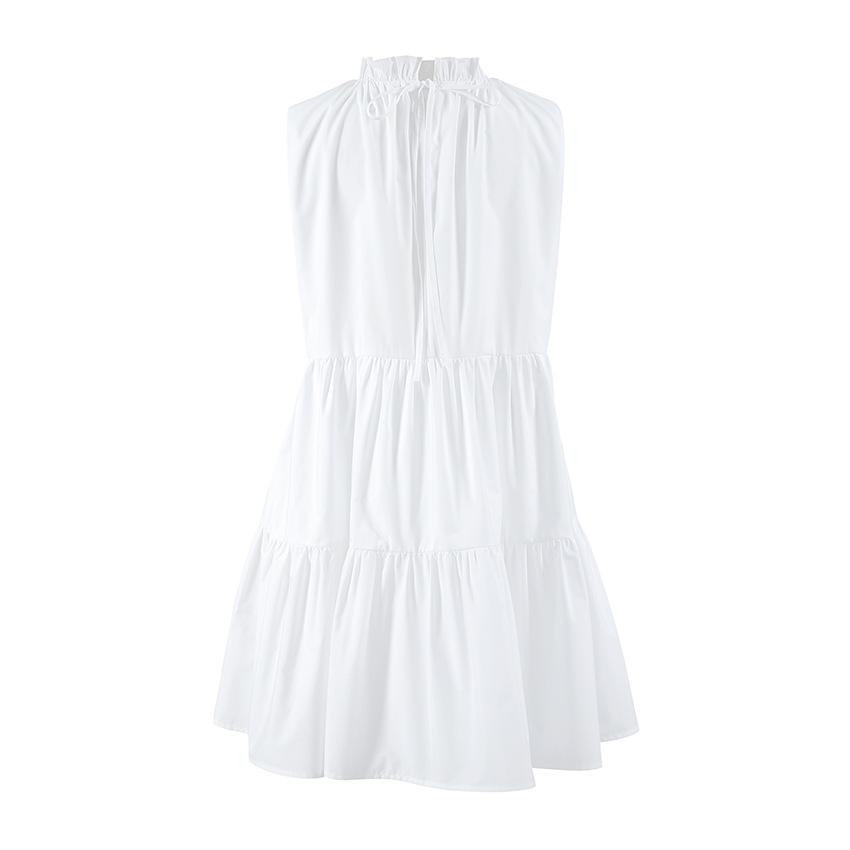 Vestido sencillo con cordones de temperamento europeo y americano Primavera y Verano 2025 Nuevo Transfronterizo Blanco Suelto Sin mangas Línea A para Viajero