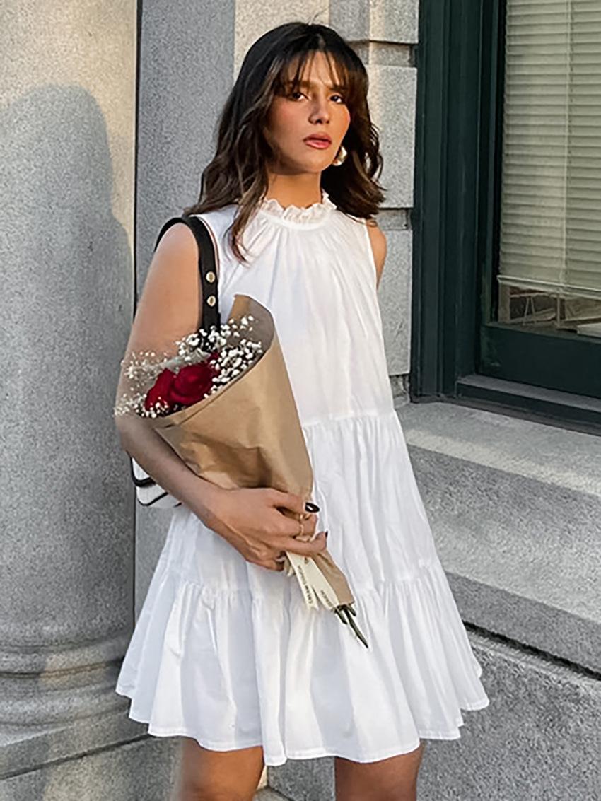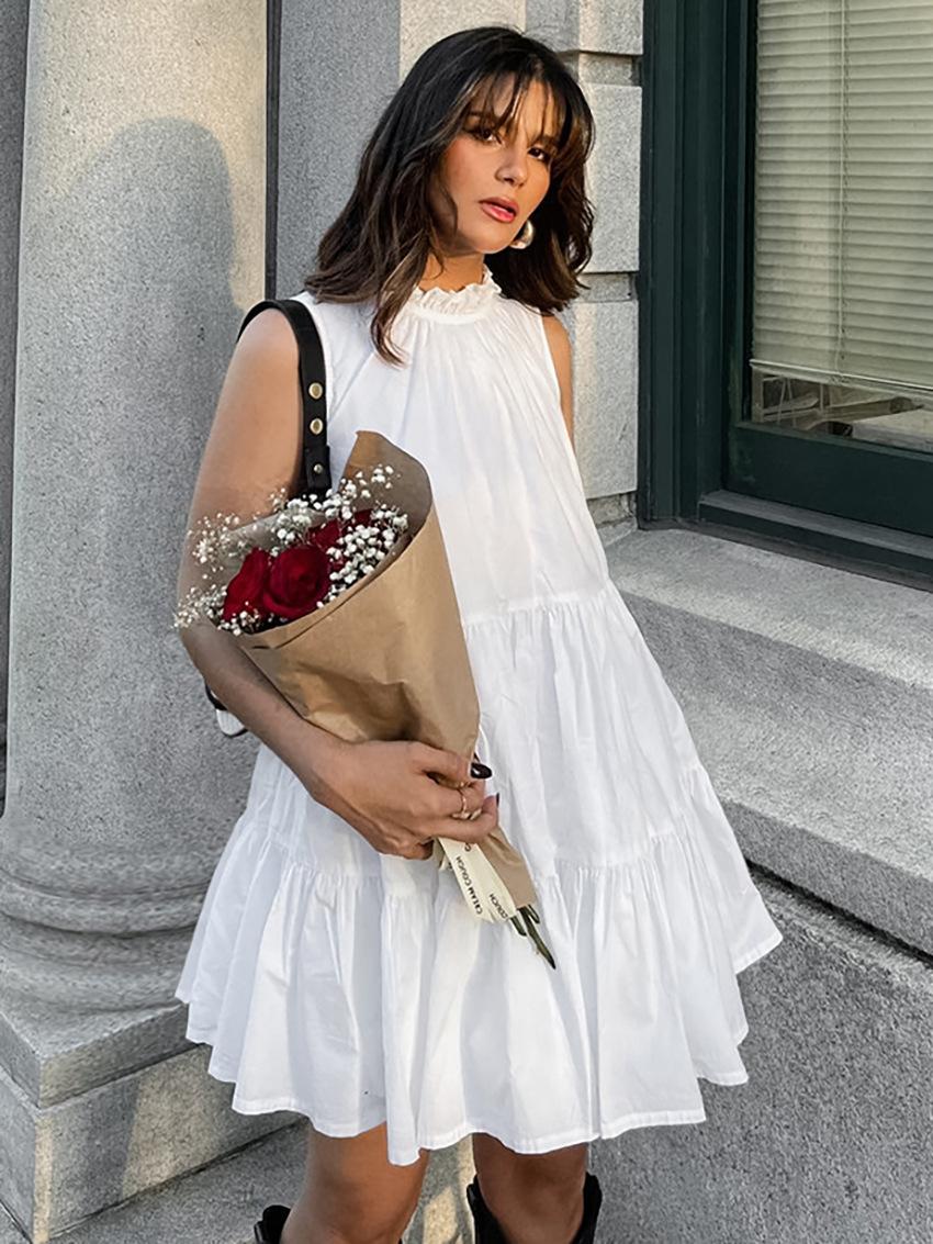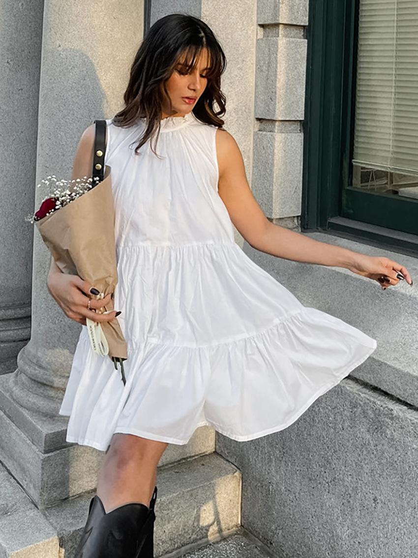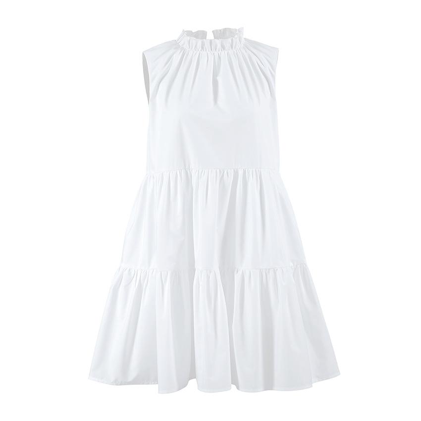 Vestido sencillo con cordones de temperamento europeo y americano Primavera y Verano 2025 Nuevo Transfronterizo Blanco Suelto Sin mangas Línea A para Viajero