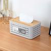 Caja de pañuelos de bambú cuadrado hueco japonés, mesa de centro, caja de almacenamiento para control remoto, sala de estar sencilla, caja de almacenamiento con cubierta de bambú