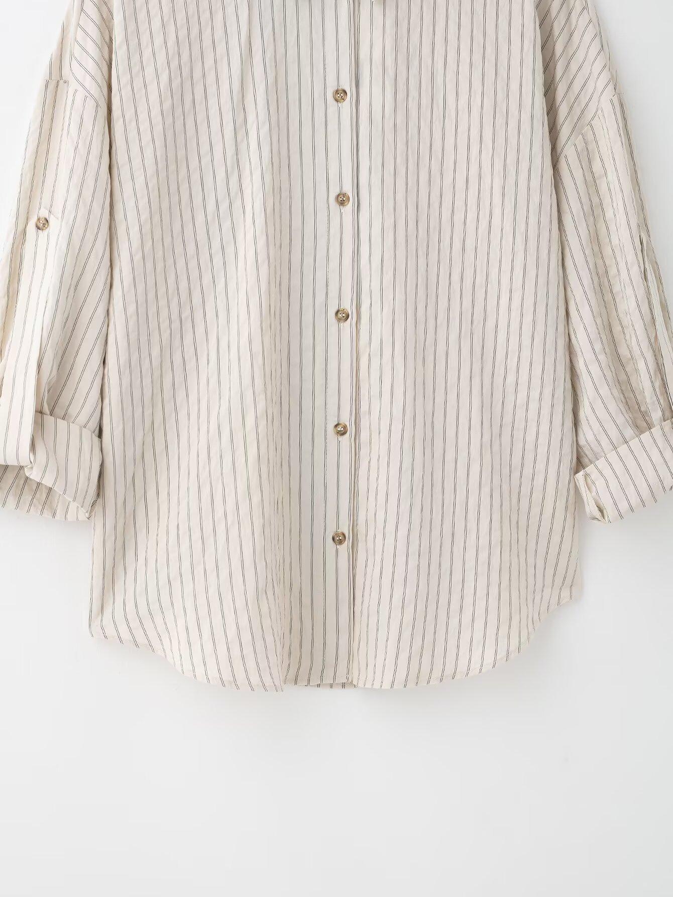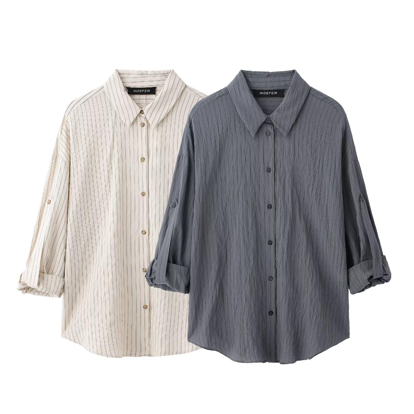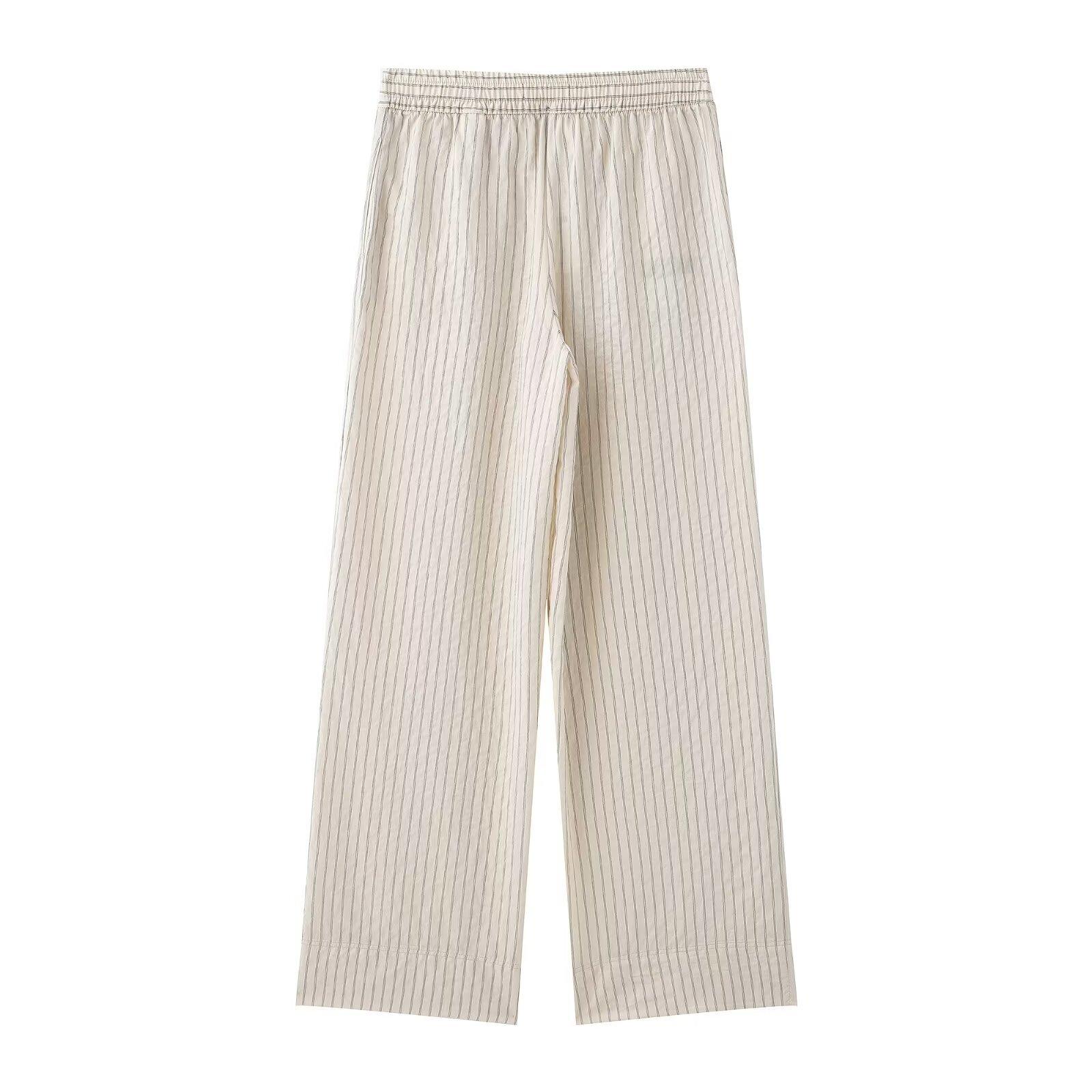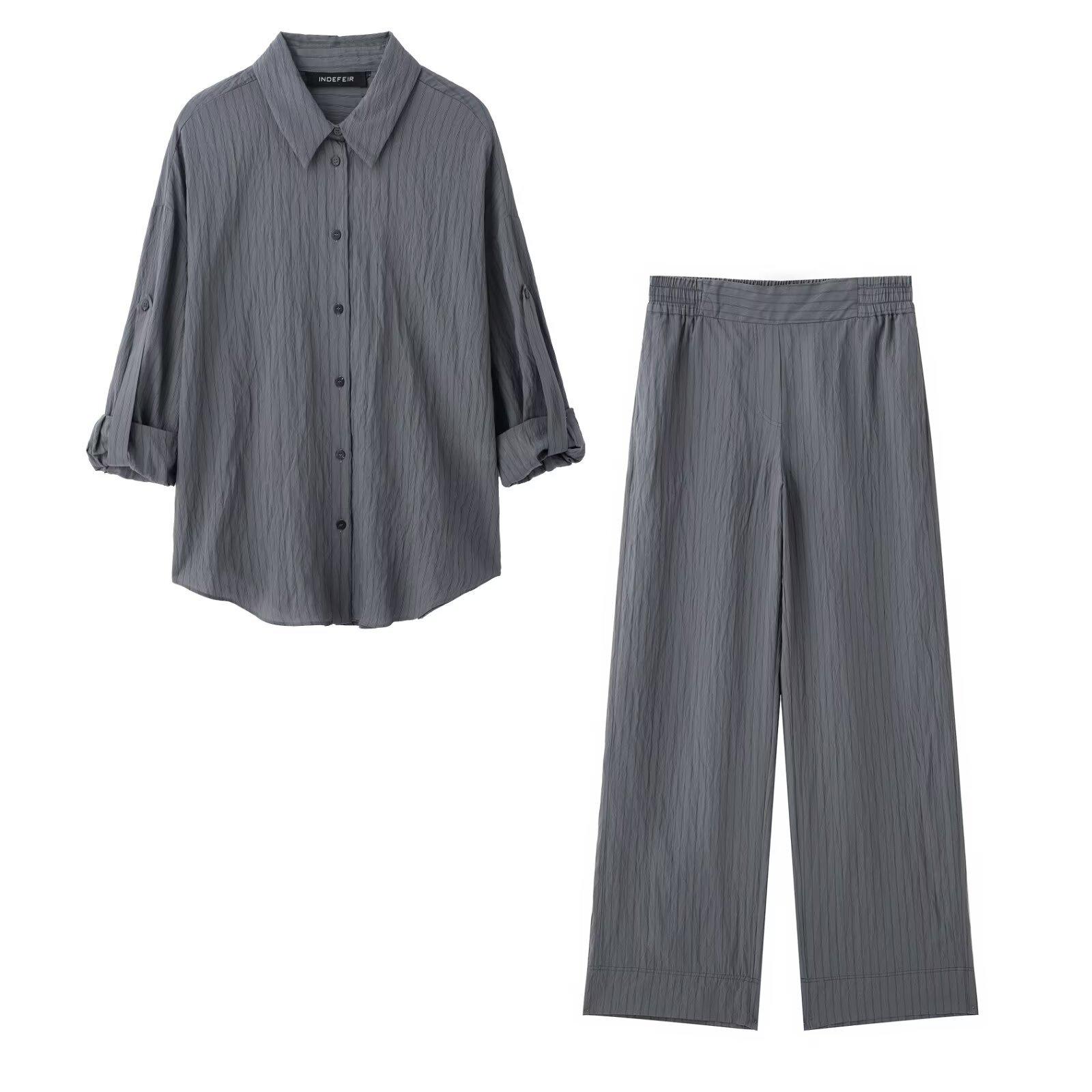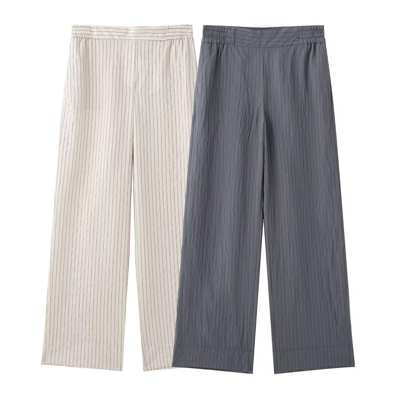 2025 primavera nuevo traje de moda europeo y americano transfronterizo para mujer camisa a rayas pantalones rectos w085 243203