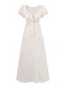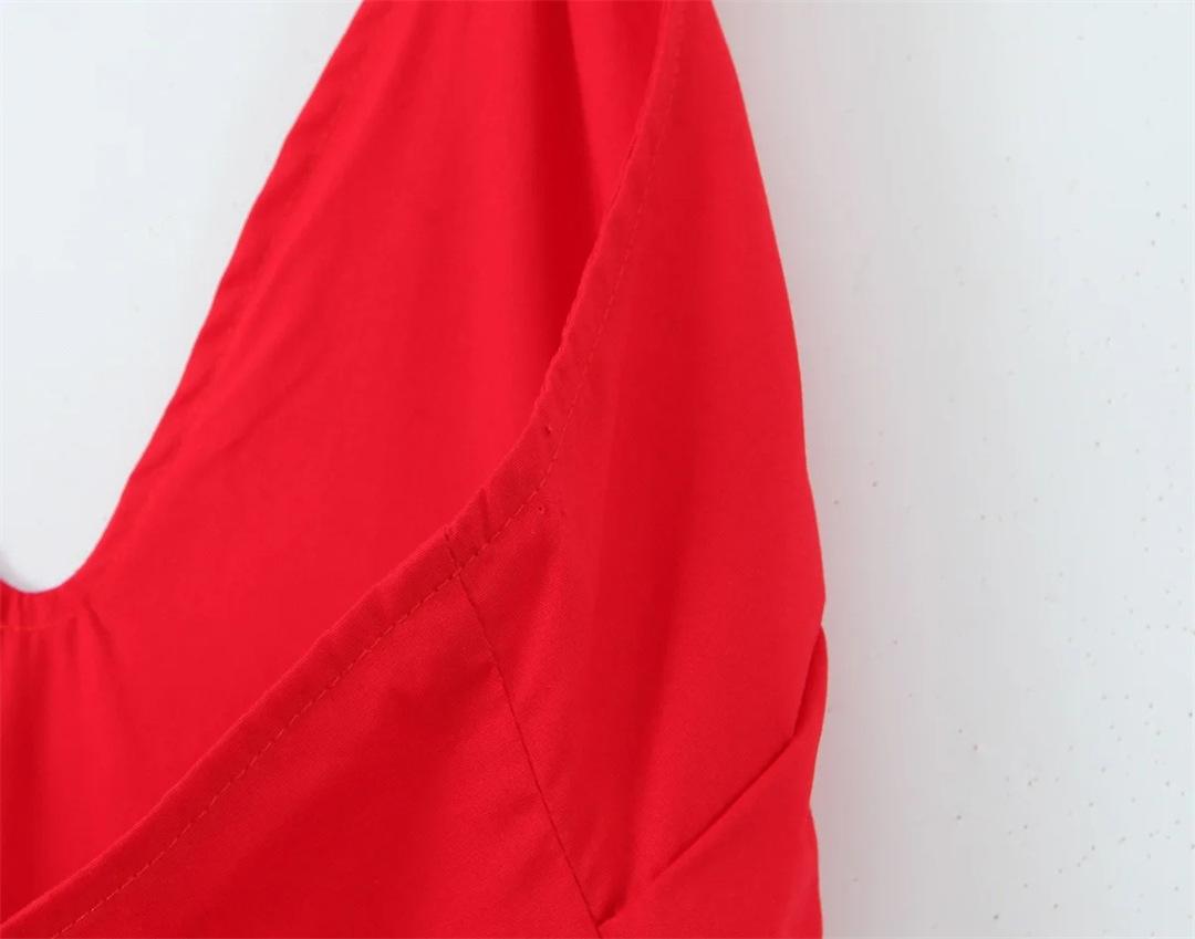 Vestido de estilo francés sexy con cuello en V y cordones, largo medio, para mujer, cintura alta, ajustado, plisado, elegante, ajustado a la cintura.