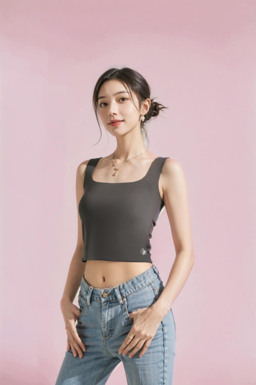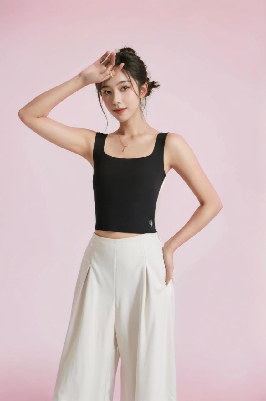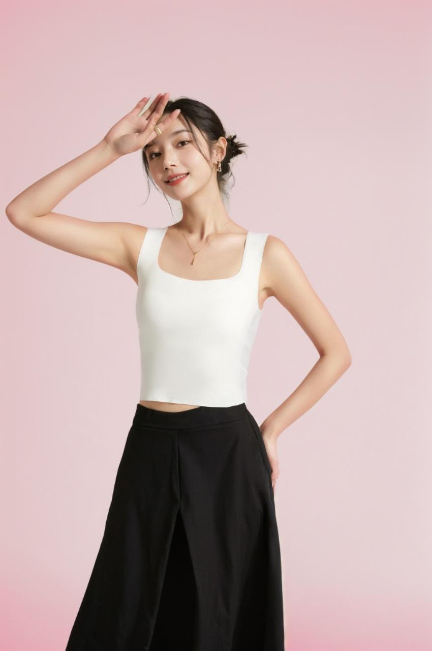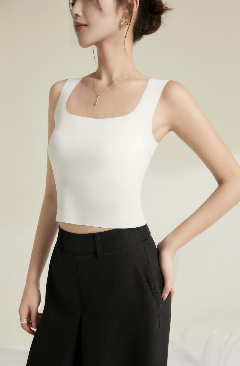 Chaleco de seda de hielo con cuello cuadrado y almohadilla para el pecho, prenda exterior de verano para mujer, parte superior interior adelgazante de corte entallado con hermosa base en la espalda