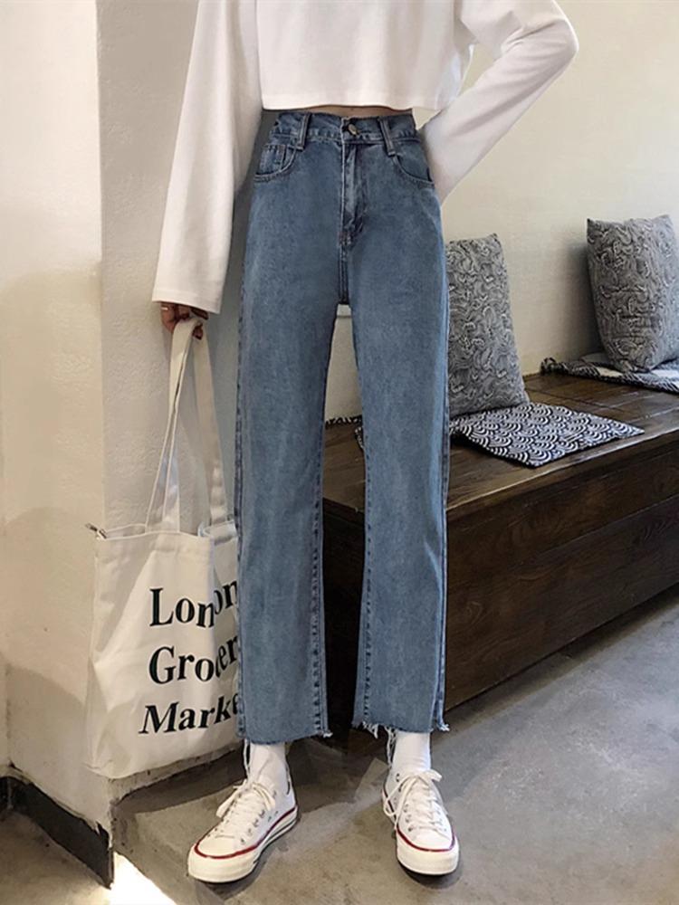 Jeans de Pierna Recta para Mujer Otoño 2025 Hermana Gordita mm Holgados Corte Slim Rojo Pantalones Recortados para Chicas Gorditas