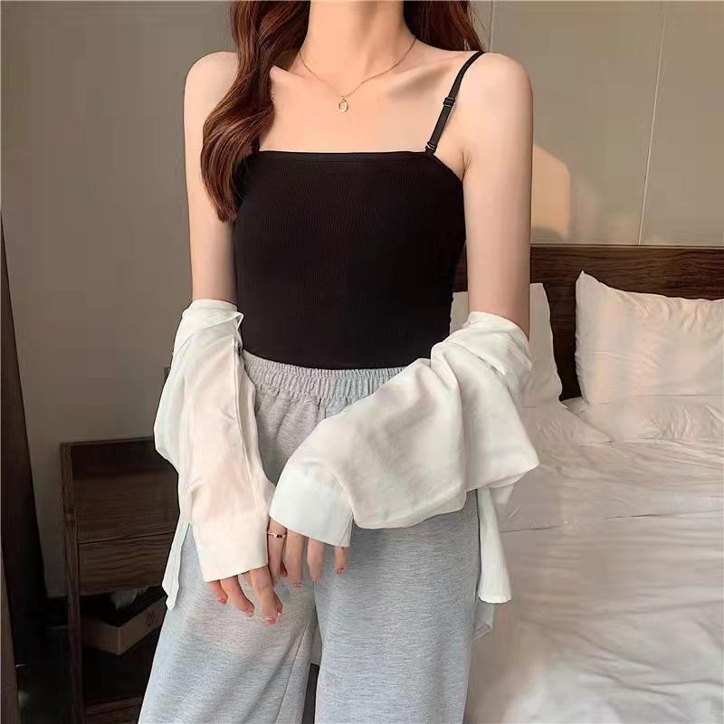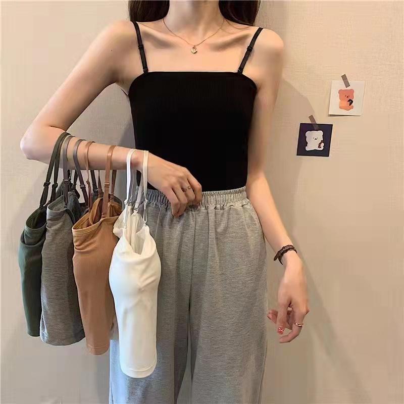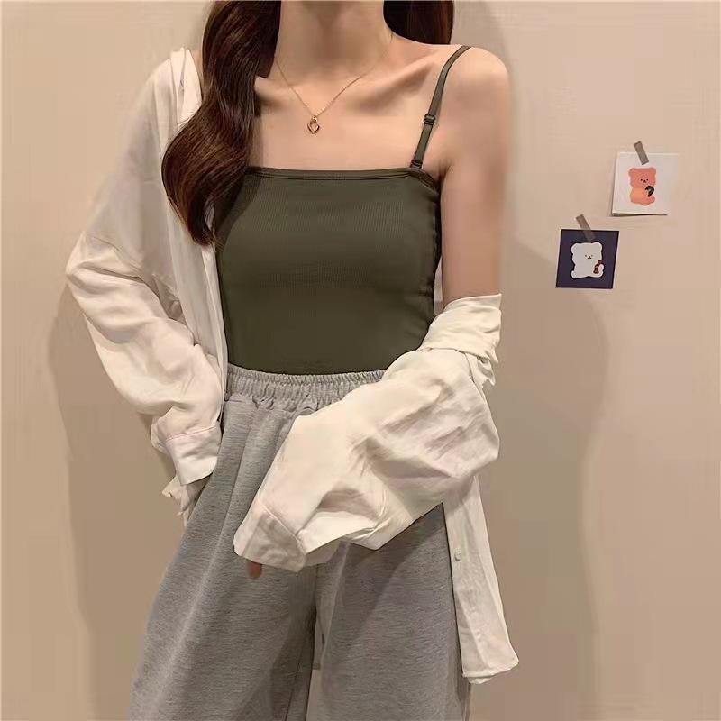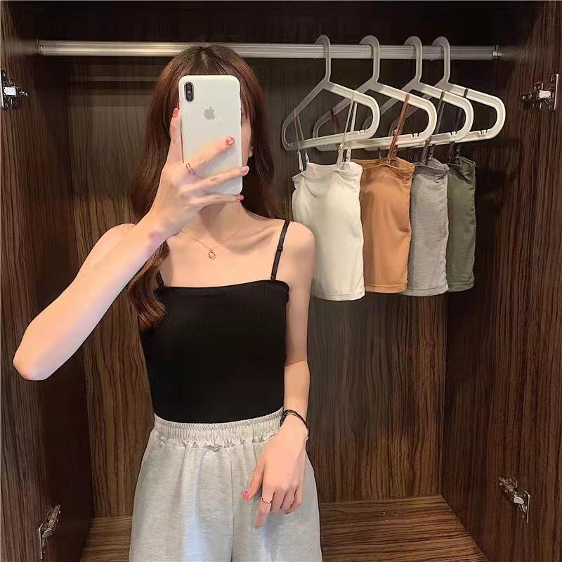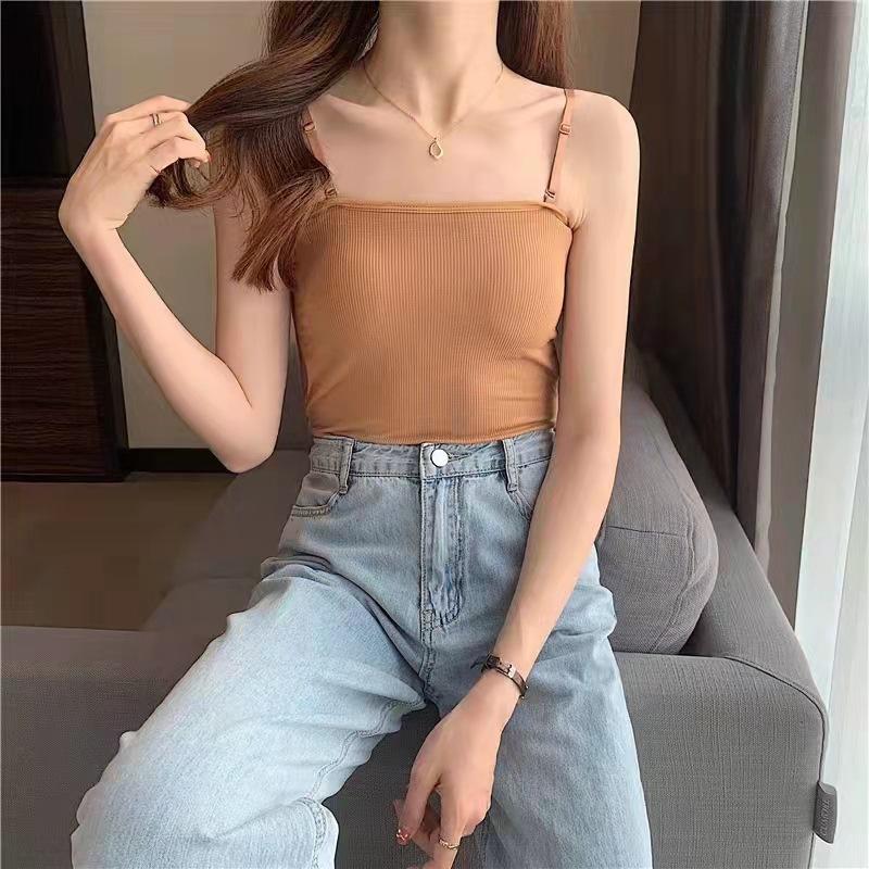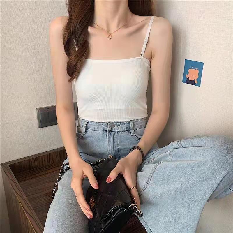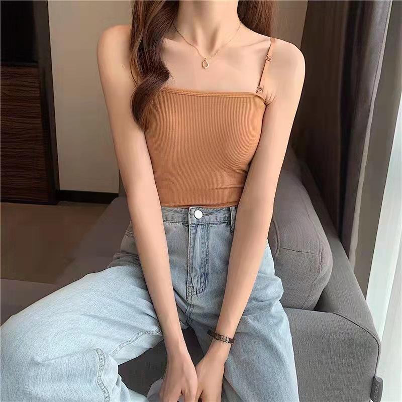 Nuevo diseño de verano, camisola sencilla y sexy, prenda interior versátil con almohadillas para el pecho, se puede usar como prenda exterior.
