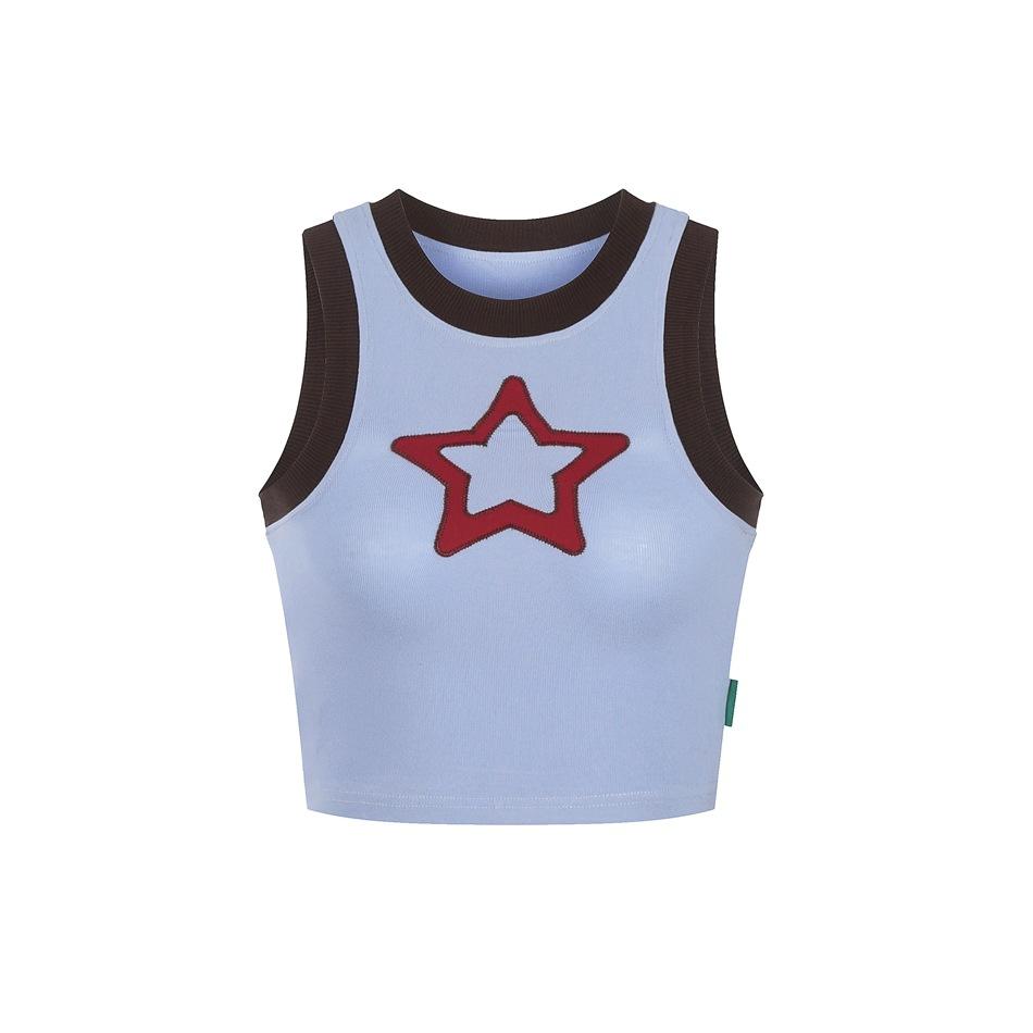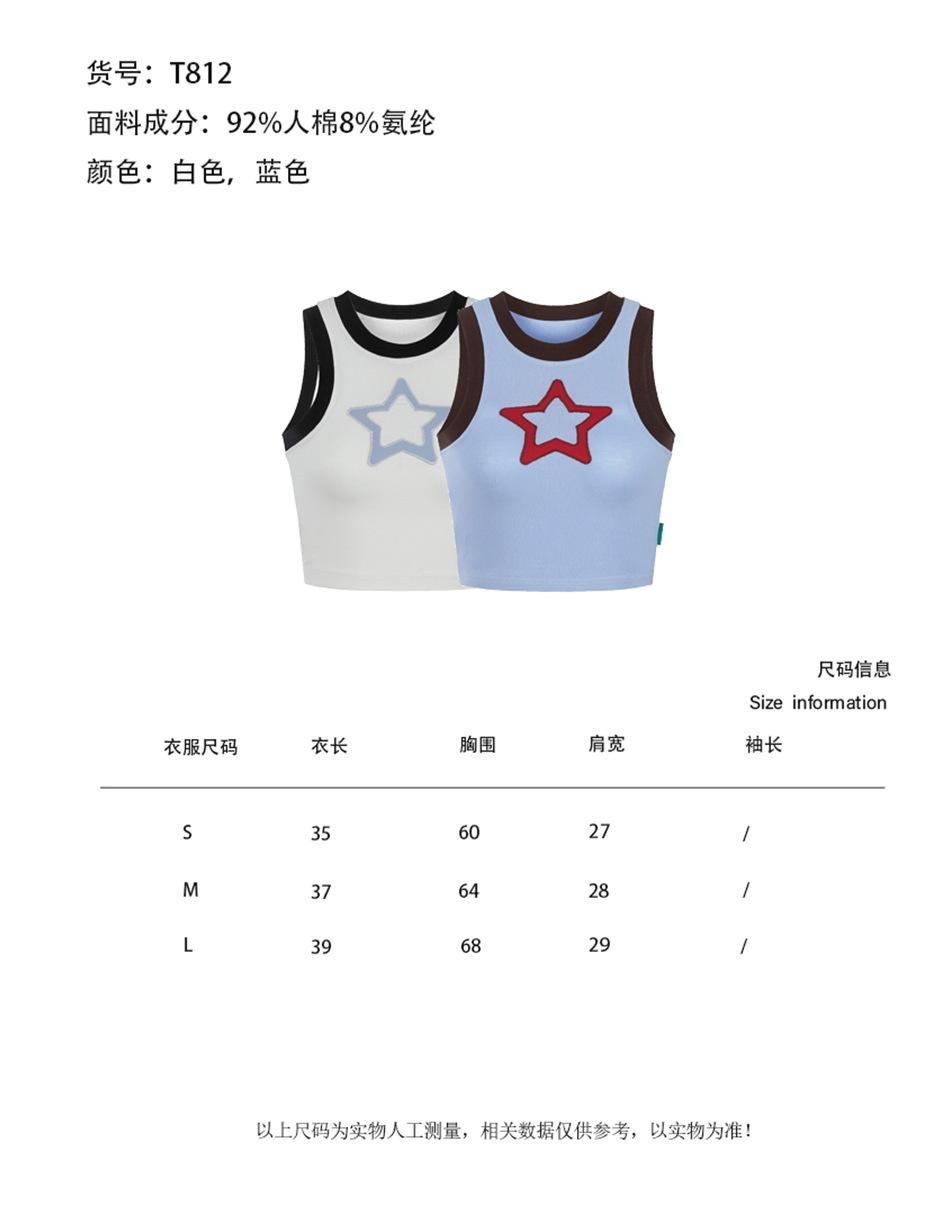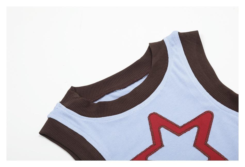 STIWAUP Marca de Moda de Estilo Americano Estilo Universitario Chaleco Deportivo para Niña Camiseta Corta sin Mangas Bordada con Estrella T812
