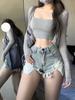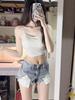 Shorts de mezclilla blancos ajustados rasgados para mujer primavera y verano estilo americano sexy pantalones cortos ajustados línea A que envuelven la cadera