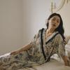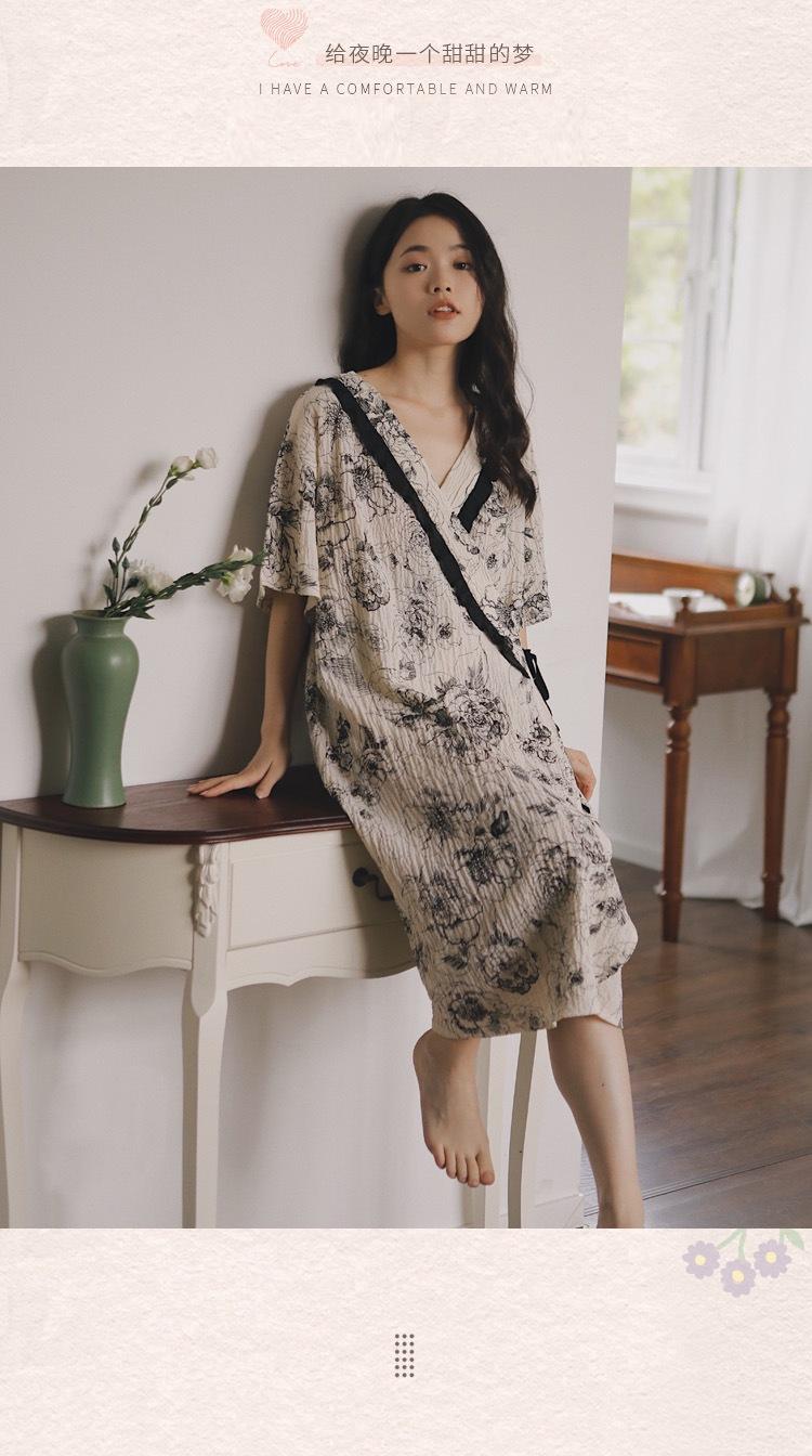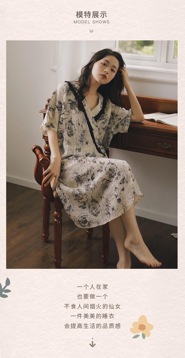 (en stock) Luna Camisón de Lactancia para Mujeres Embarazadas de Crepé Burbuja Tejido de Manga Corta