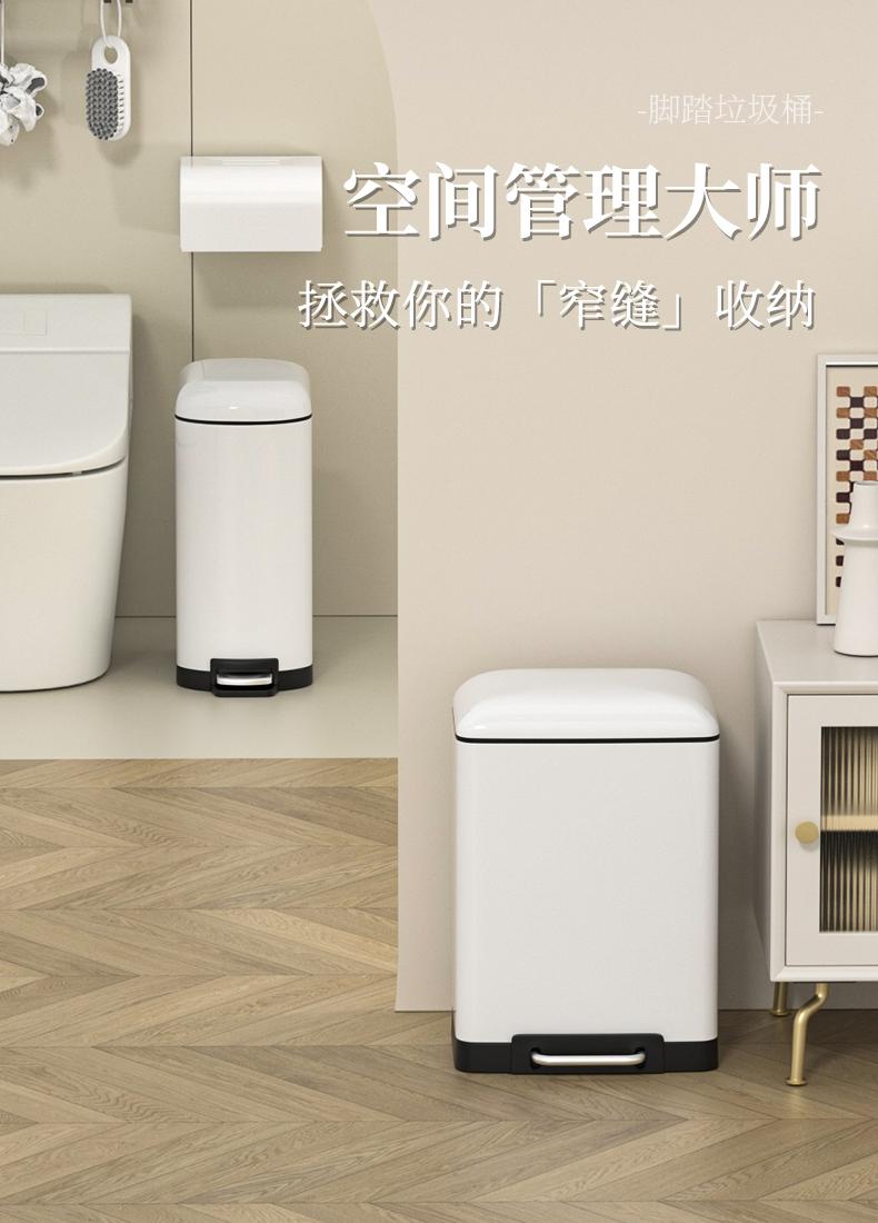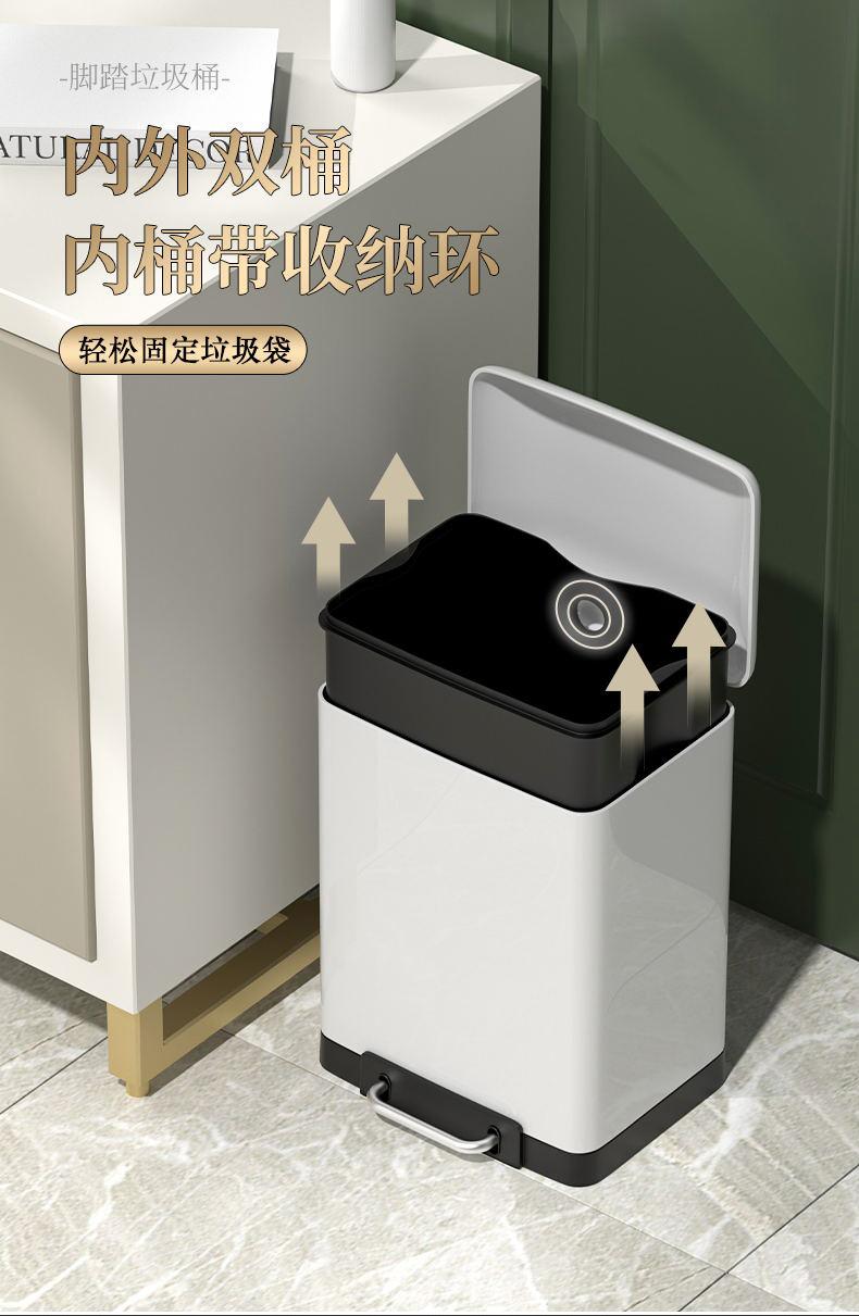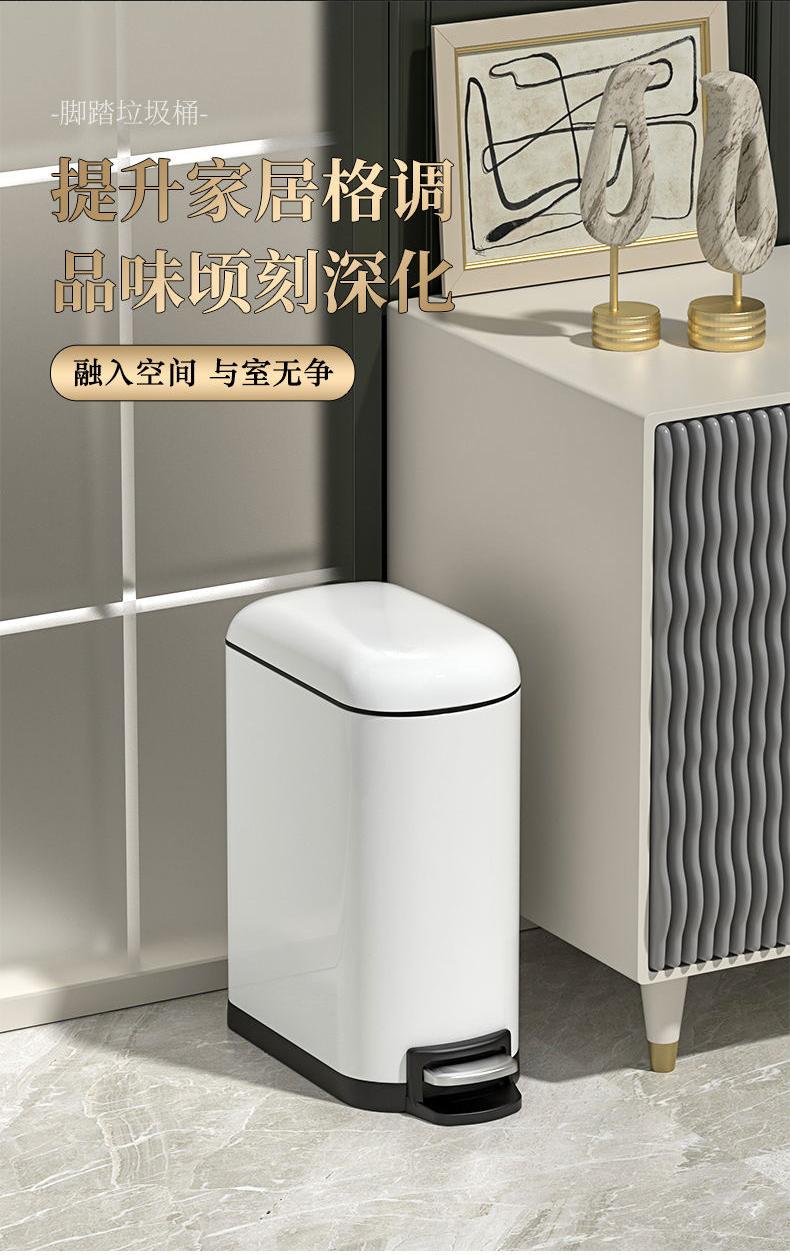 Bote de basura rectangular de doble capa de alta calidad con tapa para uso doméstico, adecuado para espacios estrechos en la sala de estar, cocina, baño y aseo.