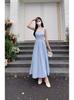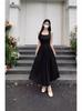 Vestido largo elegante entallado de talle retro francés con tirantes para mujer, sin mangas, estilo suave, adelgazante, de verano