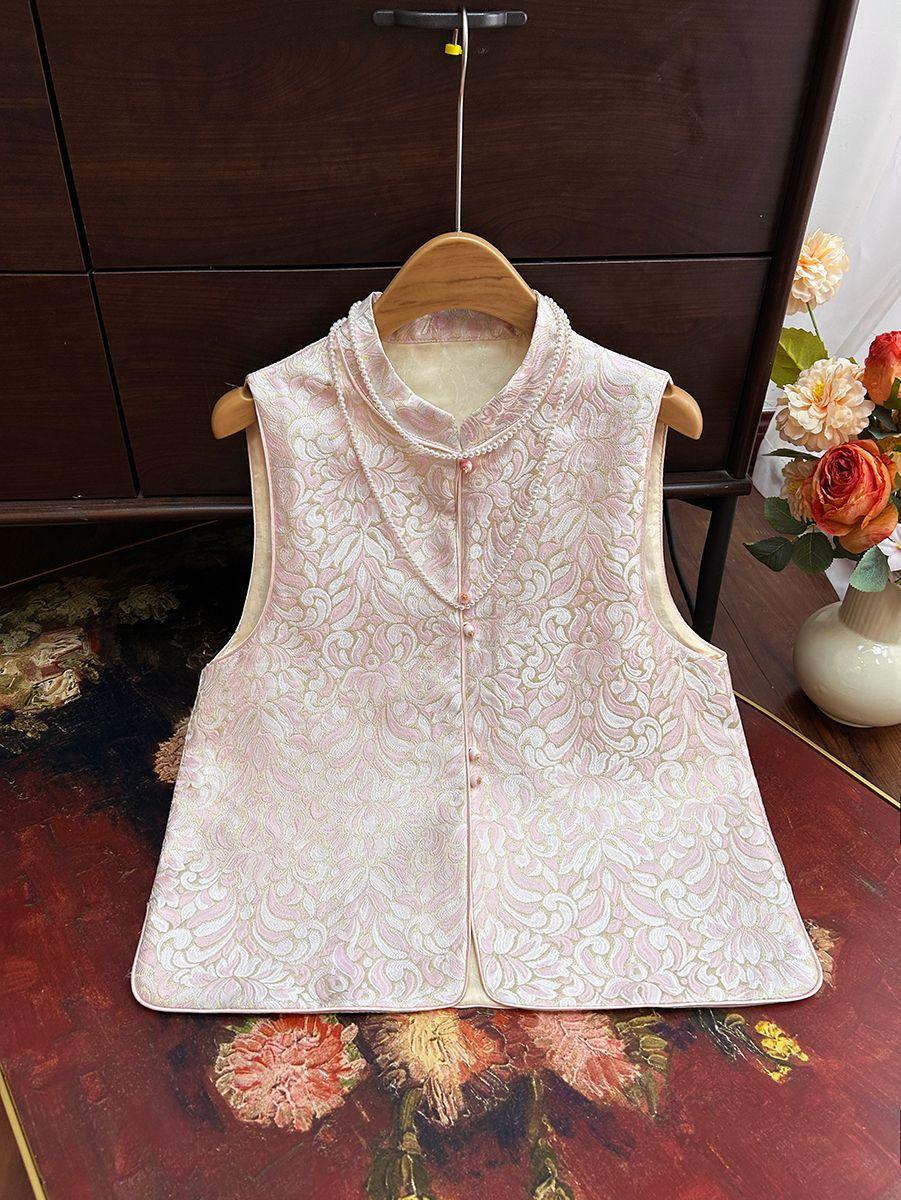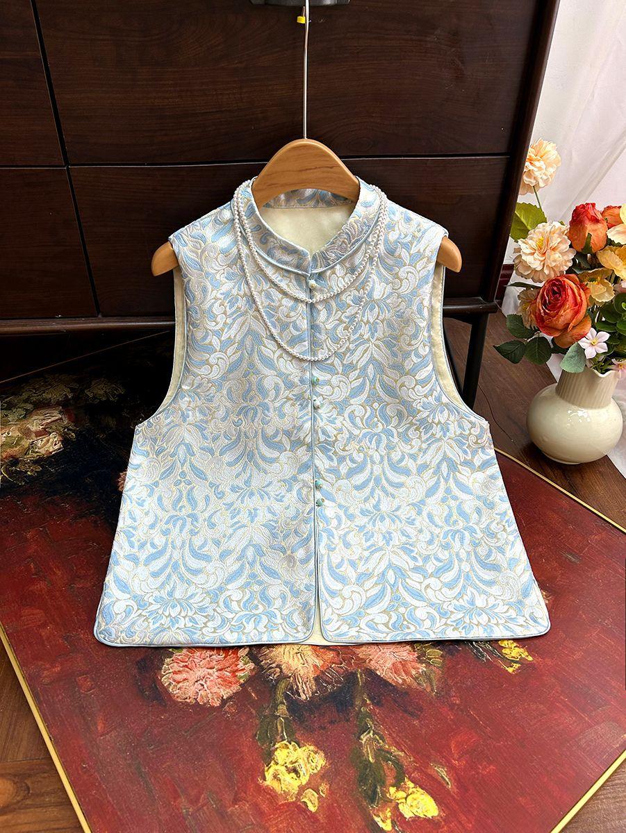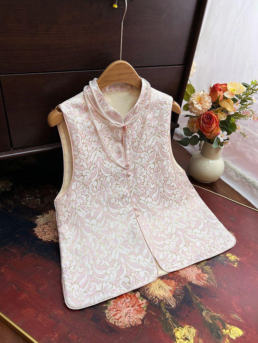 Chaleco de jacquard con cuello estilo nacional chino para mujer, primavera 2025, nuevo, fresco, informal, sencillo, a la moda.