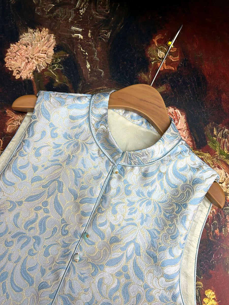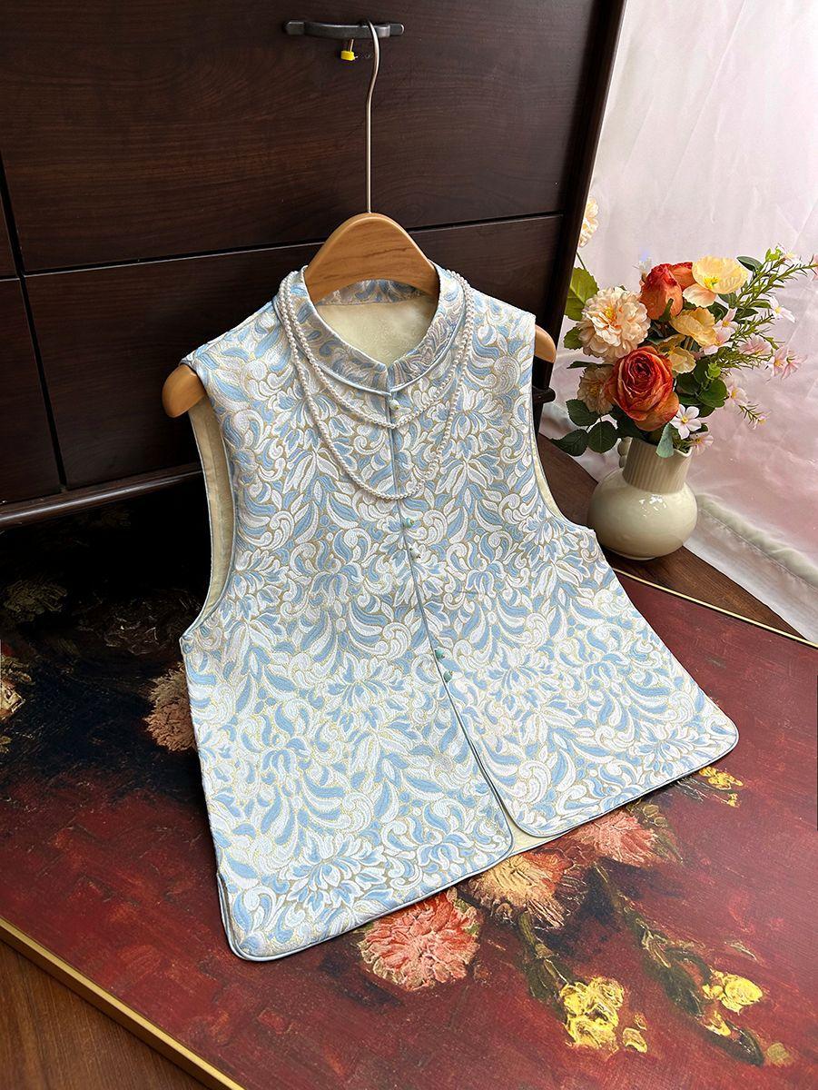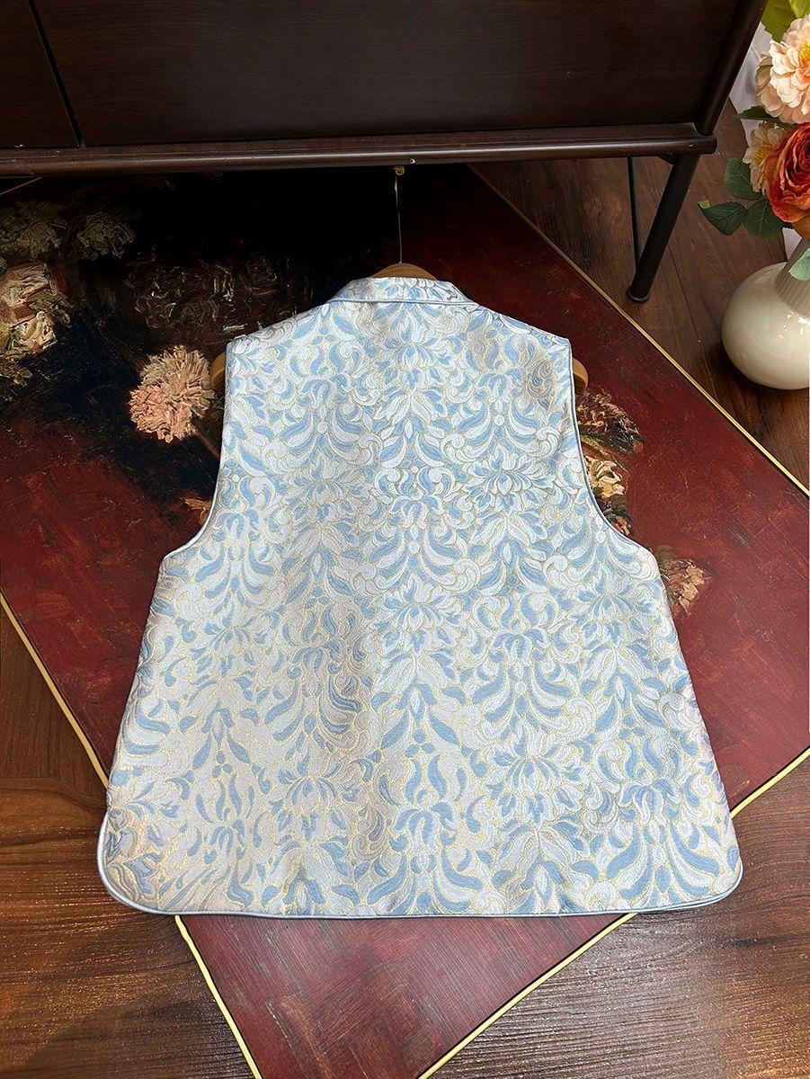Chaleco de jacquard con cuello estilo nacional chino para mujer, primavera 2025, nuevo, fresco, informal, sencillo, a la moda.