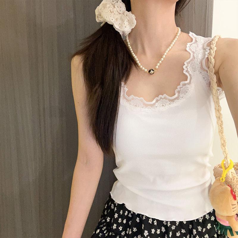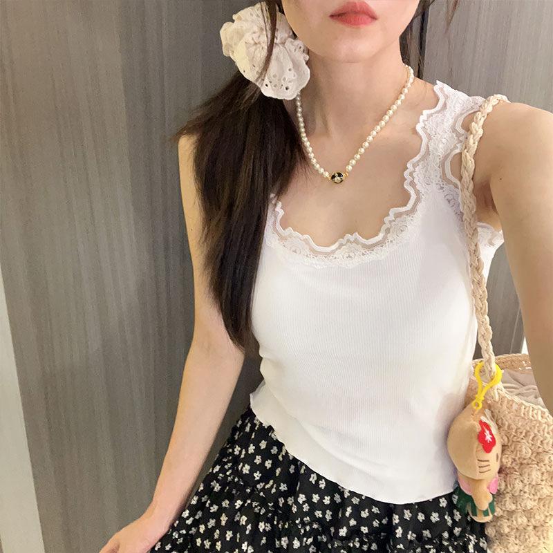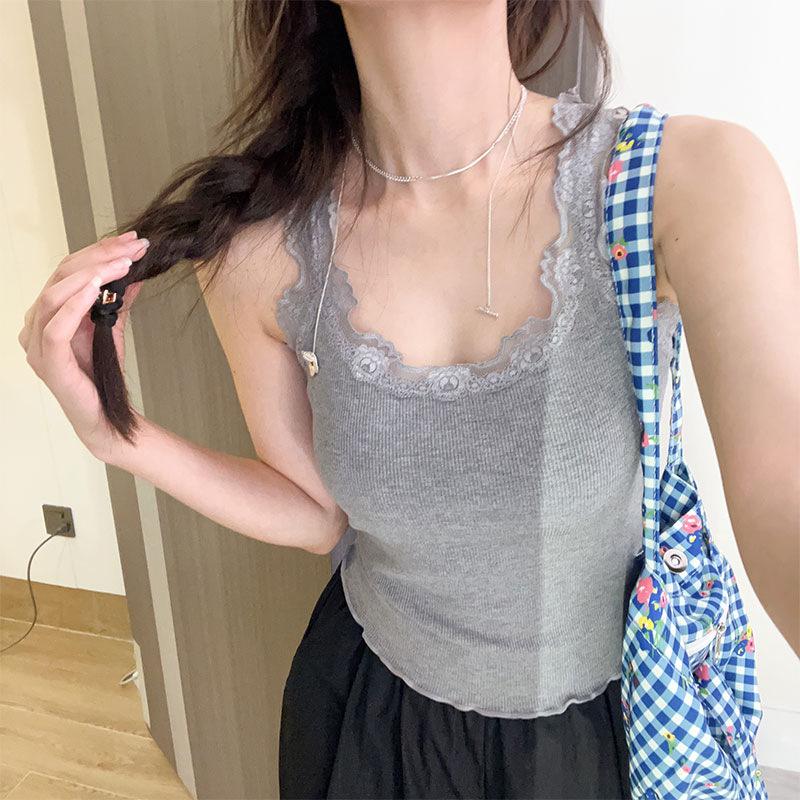 Encaje Encaje Ropa Exterior Base Ajustado Adelgazante Hermoso Espalda Camisola Corta 2024 Estilo Puro Top de Chica Caliente para Mujer