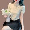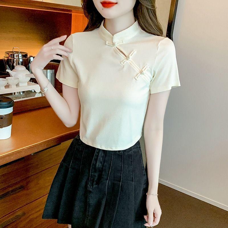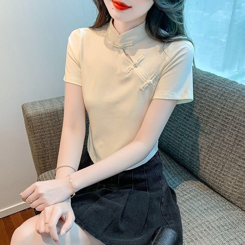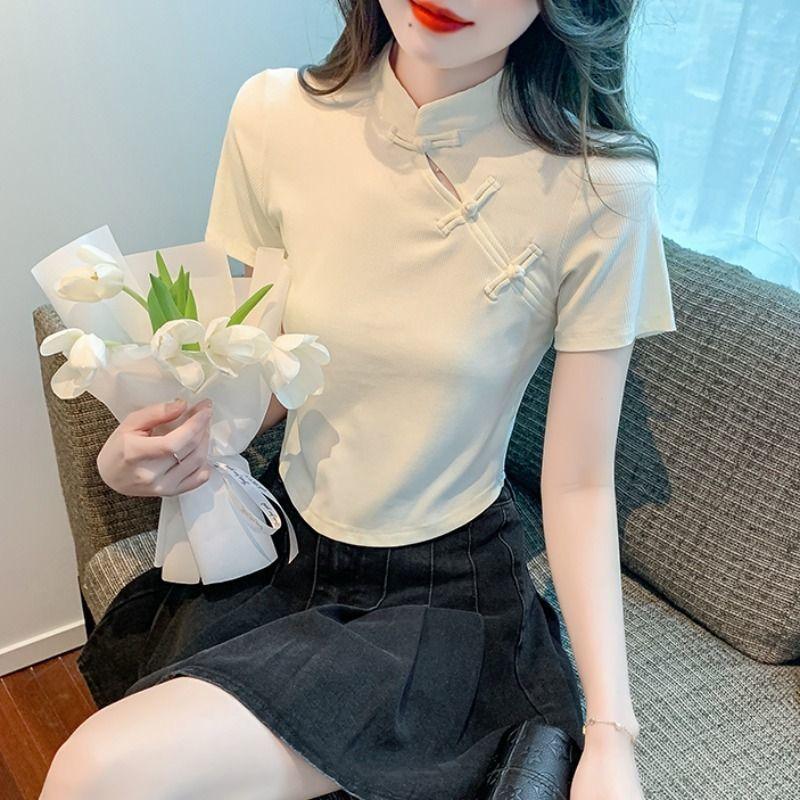 Compra Moda Nicho Nuevo Chino 2025 Nuevo Estilo Nacional Botón Cuello Vertical Camiseta de Manga Corta Cintura Ajustada Corte Slim Adelgazante Top Ins al por mayor en Joom.pro