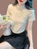 Moda Nicho Nuevo Chino 2025 Nuevo Estilo Nacional Botón Cuello Vertical Camiseta de Manga Corta Cintura Ajustada Corte Slim Adelgazante Top Ins