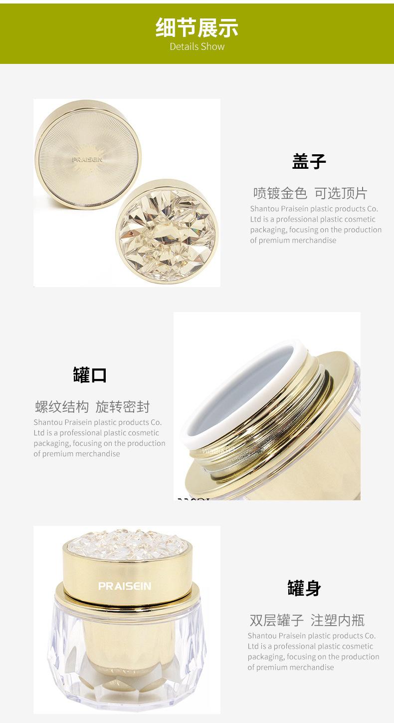 Frasco de crema acrílica de 50 g con tapa de taladro rota, botella de crema facial dorada, frasco cosmético de plástico doble