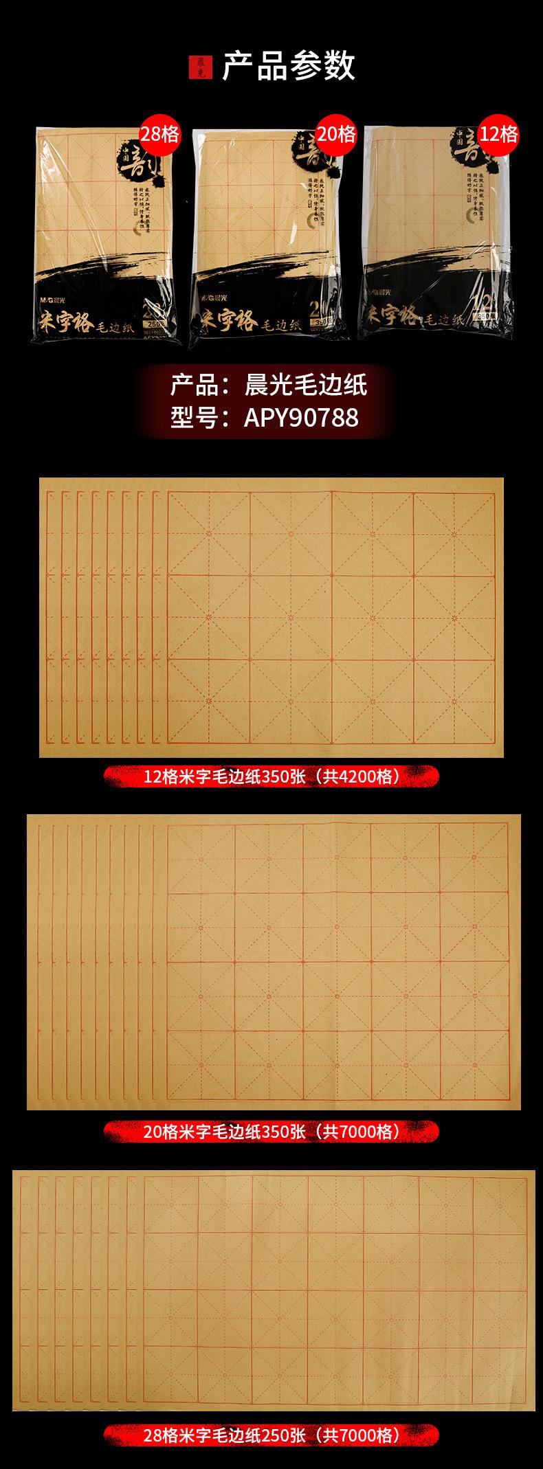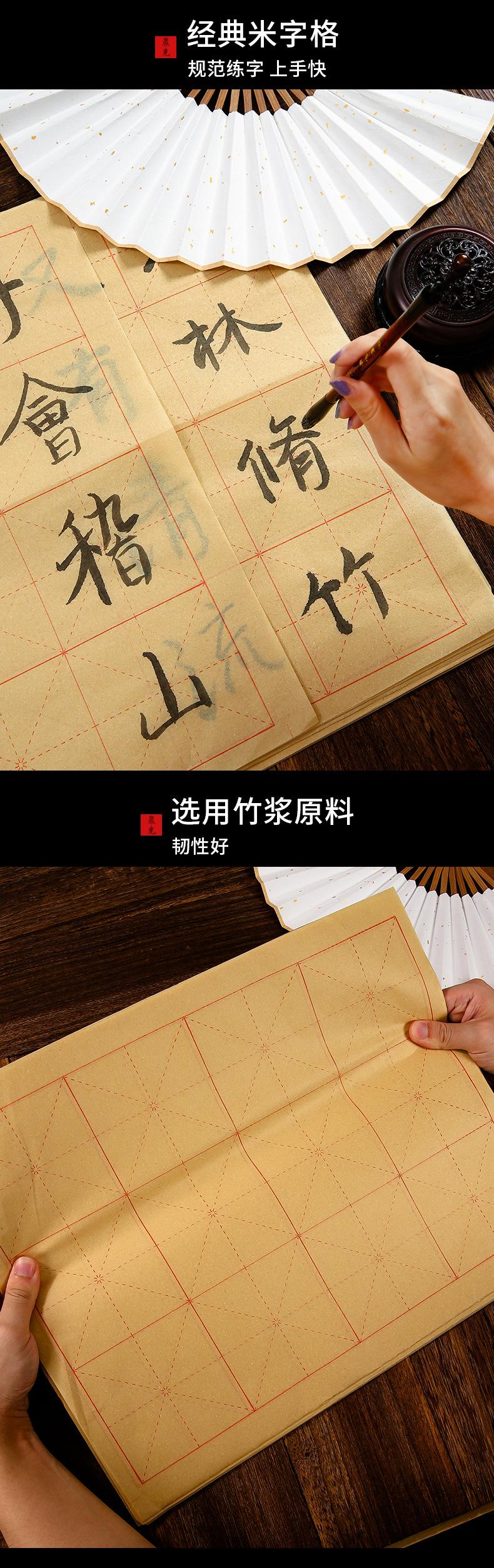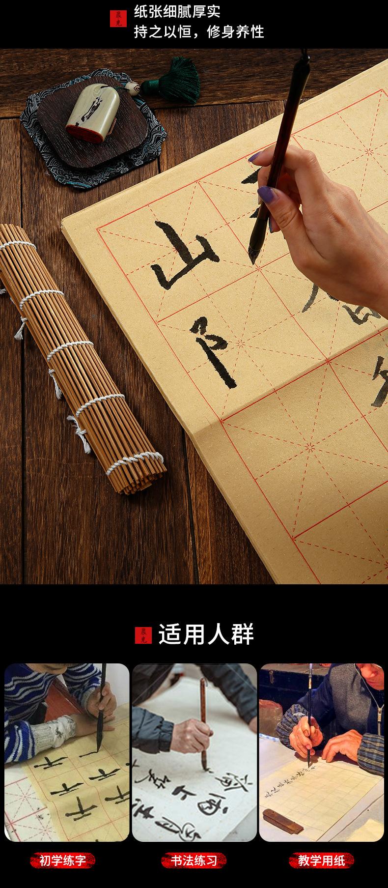 Luz Matutina Papelería Papel de Borde Rugoso 30 Páginas Cuadrícula de Arroz Papel Grueso para Práctica de Caligrafía Papel de Enseñanza para Caligrafía con Pincel para Principiantes