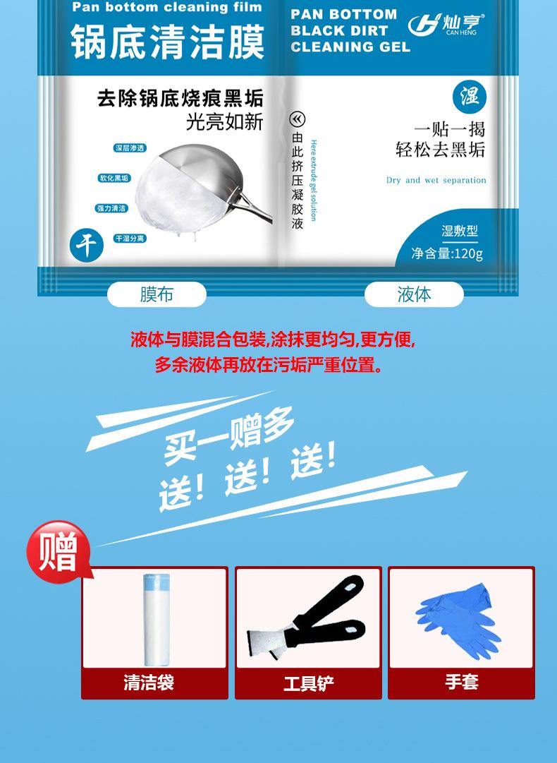 1 piece of 120g pot bottom cleaning film, 1 shovel, 1 pair of gloves