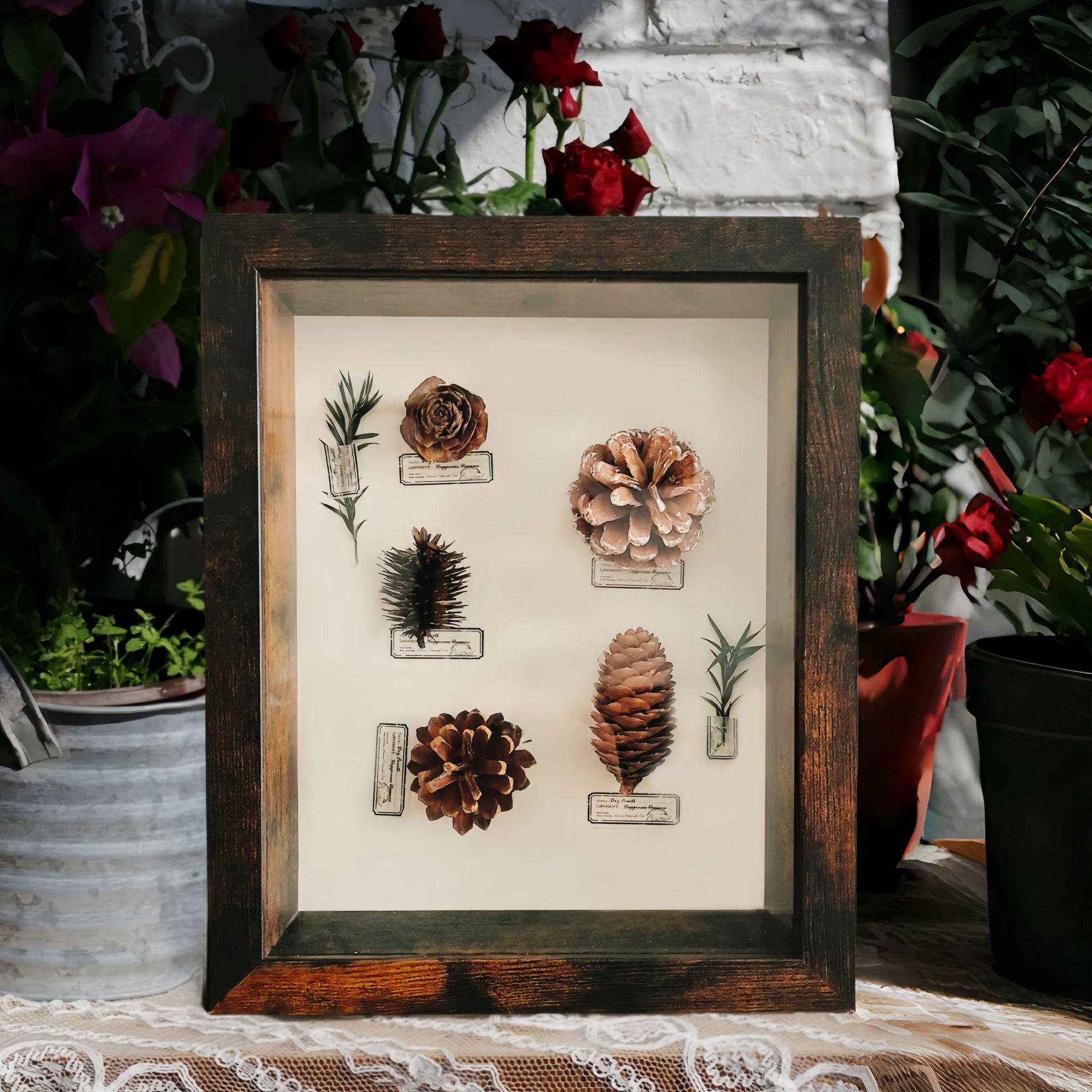 Marco de fotos de vidrio hueco tridimensional, mesa creativa, exhibición de palacio, rejilla hecha a mano, flor seca, planta, semilla, espécimen, marco de imagen decorativo para colgar en la pared