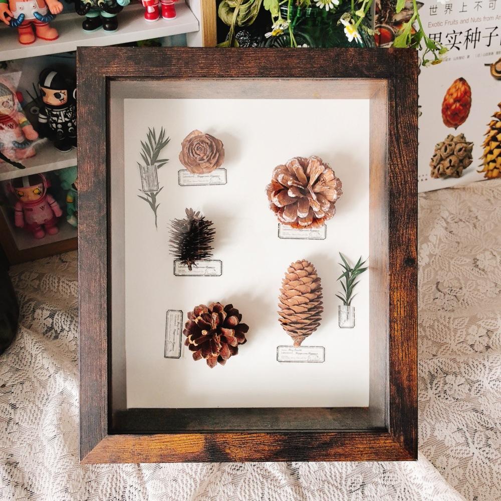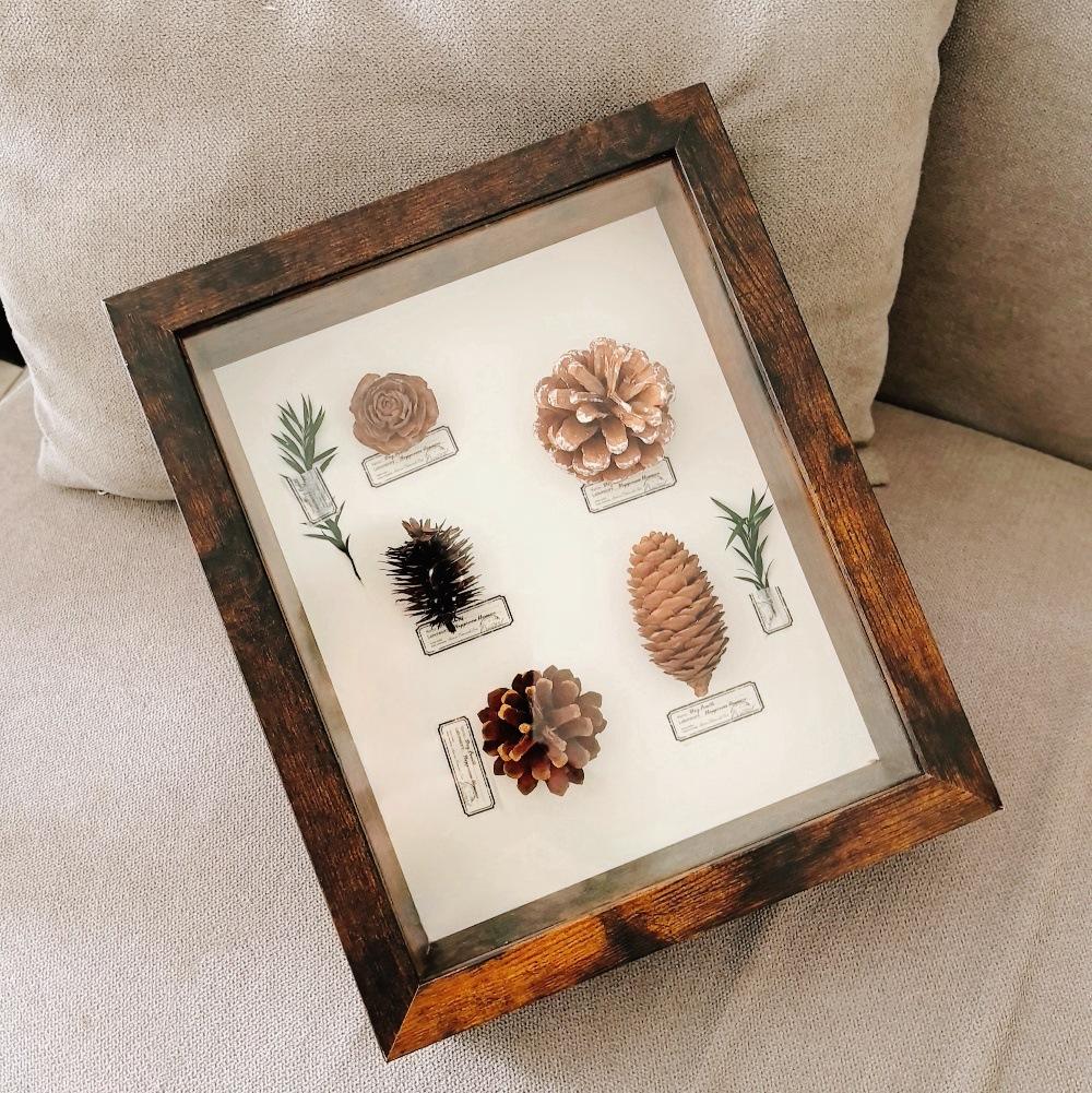 Marco de fotos cuadrado de madera nórdica prensado a mano, muestra de flores secas de plantas de bricolaje, adornos colgantes de pared hechos a mano