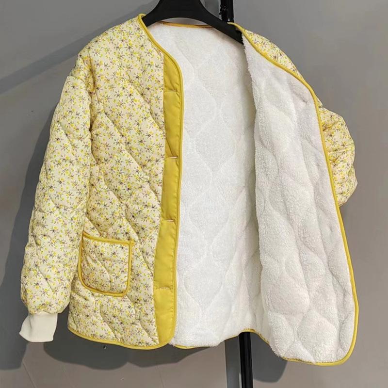 Abrigo acolchado de algodón floral para mujer, nuevo abrigo de invierno 2024, abrigo grueso y holgado estilo coreano, abrigo acolchado de algodón con flores, abrigo ligero para mujer.