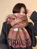 Bufanda de Invierno de Cachemira Sintética Nueva de Alta Gama Rosa Palo a Cuadros para Mujer, Estilo Coreano Versátil Retro Cálida para el Cuello