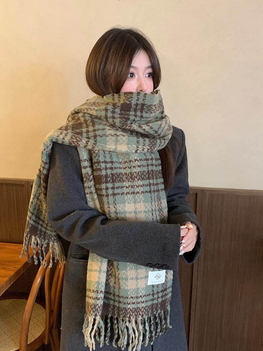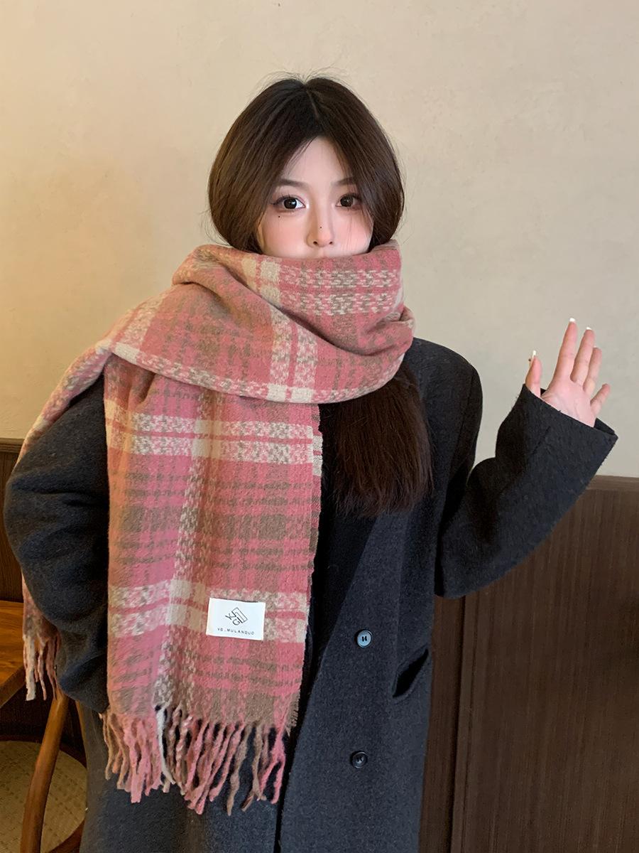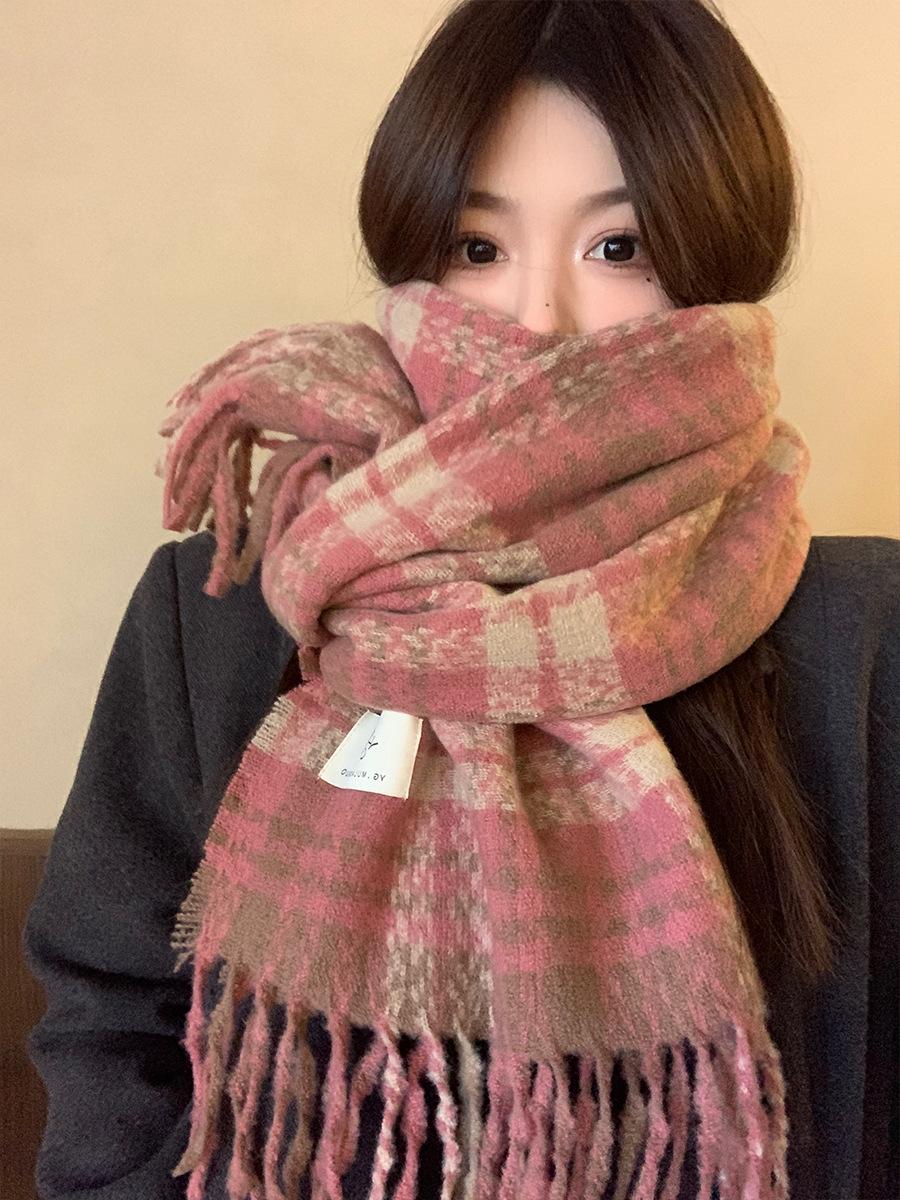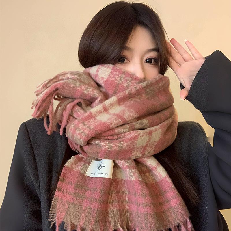 Compra Bufanda de Invierno de Cachemira Sintética Nueva de Alta Gama Rosa Palo a Cuadros para Mujer, Estilo Coreano Versátil Retro Cálida para el Cuello al por mayor en Joom.pro