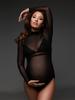Vestido de maternidad de malla con borde cruzado, vestido para sesión de fotos, vestido con cuello en V, falda de capullo de flores, foto de mamá del vientre
