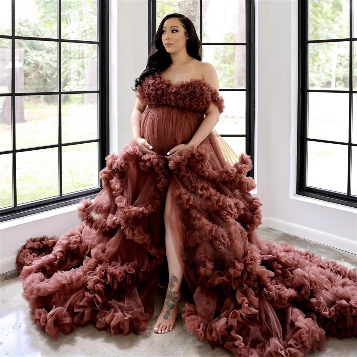 AliExpress Amazon Caliente Nuevo Malla Suave Profundo V Falda de Gasa Mujeres Embarazadas Falda de Gasa Multicolor Abertura Foto Fotografía