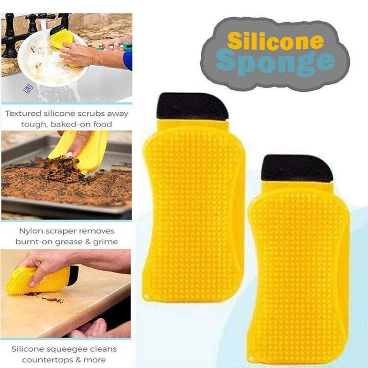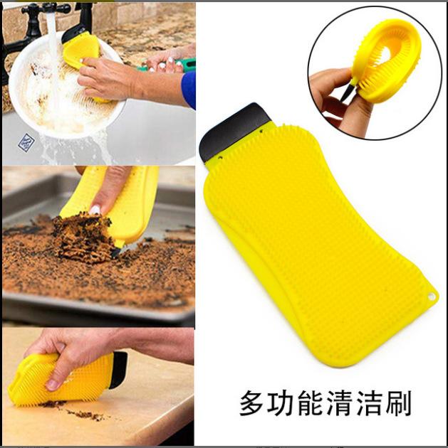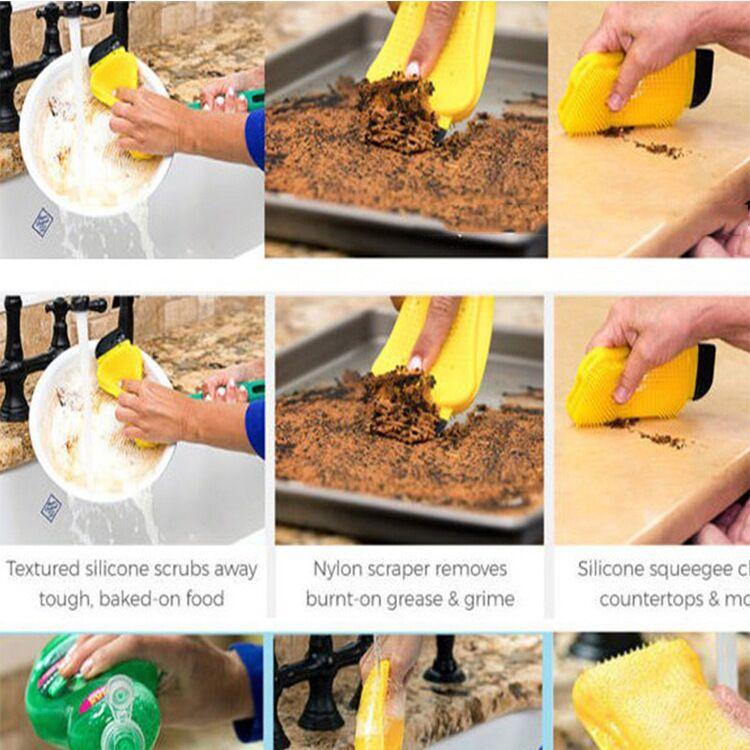 Esponja de silicona cepillo multifuncional tres en uno cepillo creativo de cocina de silicona para lavar platos cepillo de limpieza