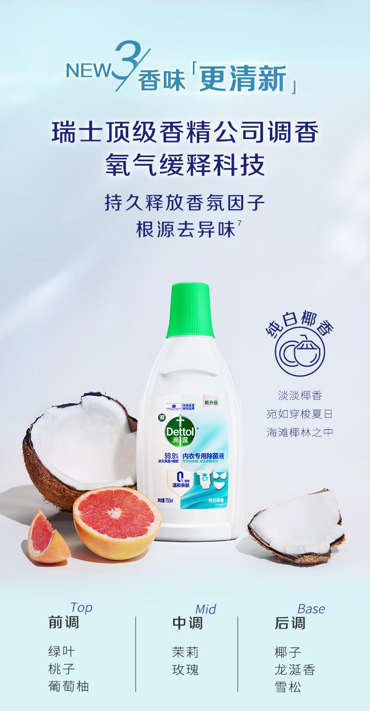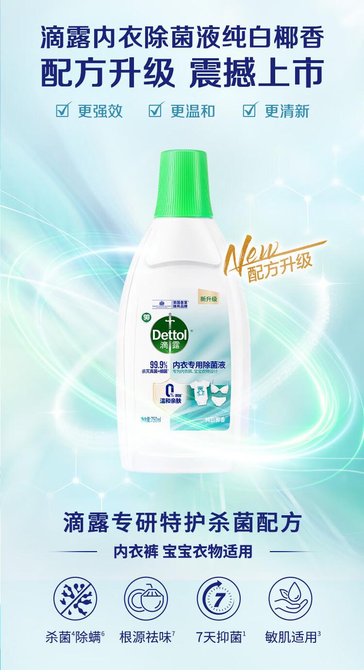 Gotas de rocío (Dettol) líquido esterilizador de ropa interior aroma coco blanco puro 750ml eliminación de olores colección una generación de cabello