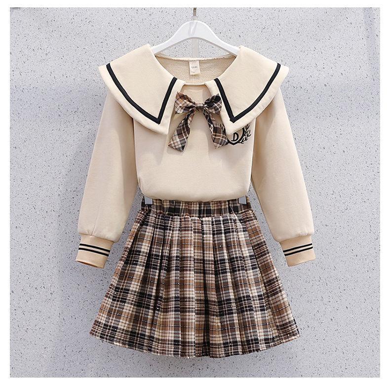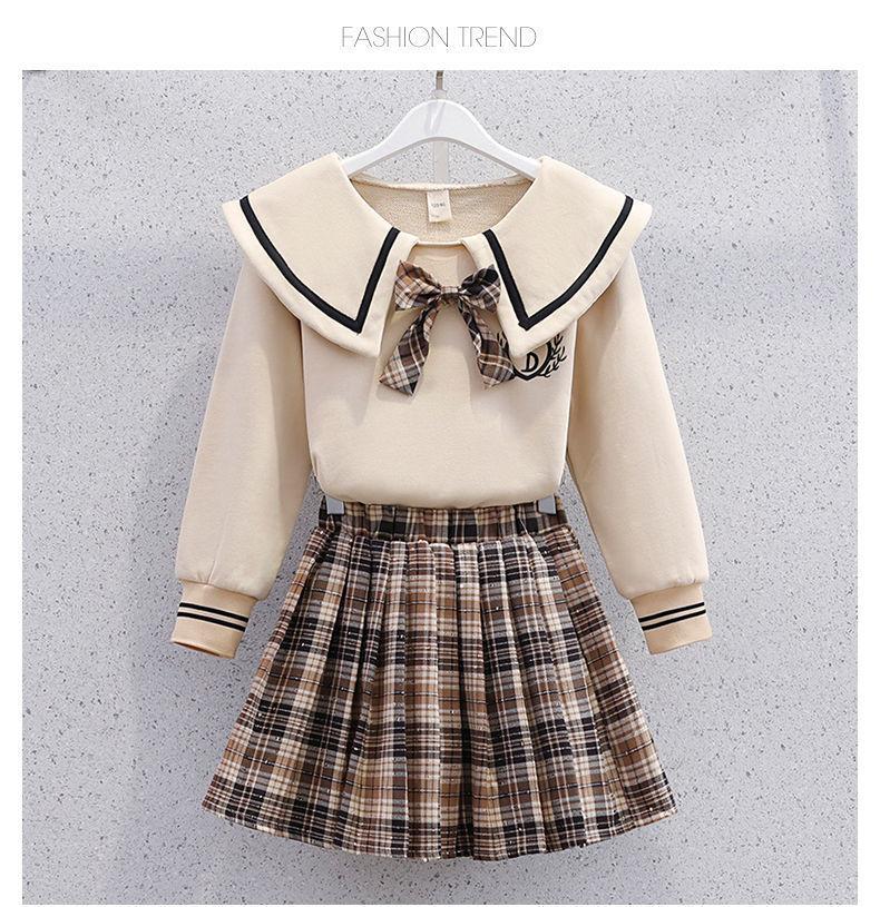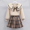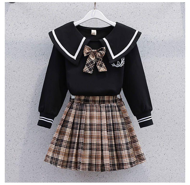 Uniforme JK informal de primavera y otoño para niñas de primaria y secundaria, falda a cuadros estilo universitario occidental, conjunto de dos piezas.