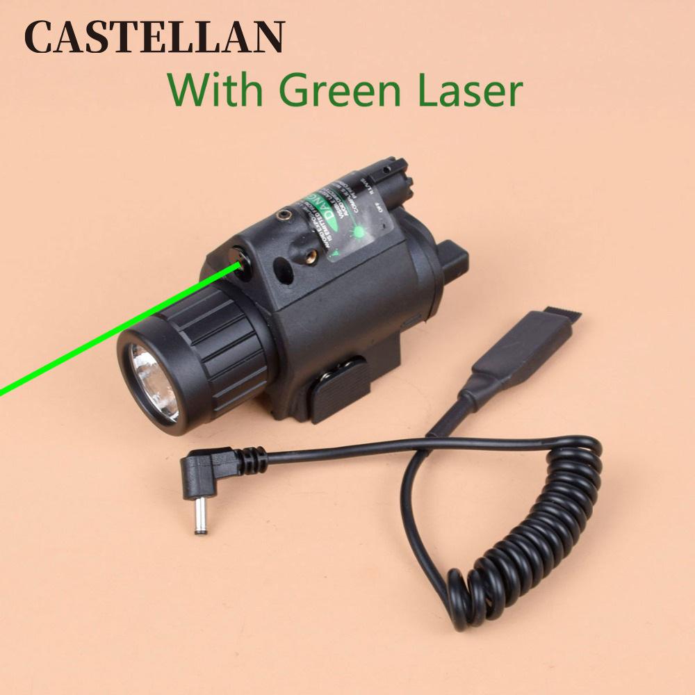 Interruptores duales: El interruptor de botón enciende el haz continuo de la linterna o/y el punto láser. El interruptor remoto de cable incluido enciende la linterna o/y el punto láser momentáneamente.