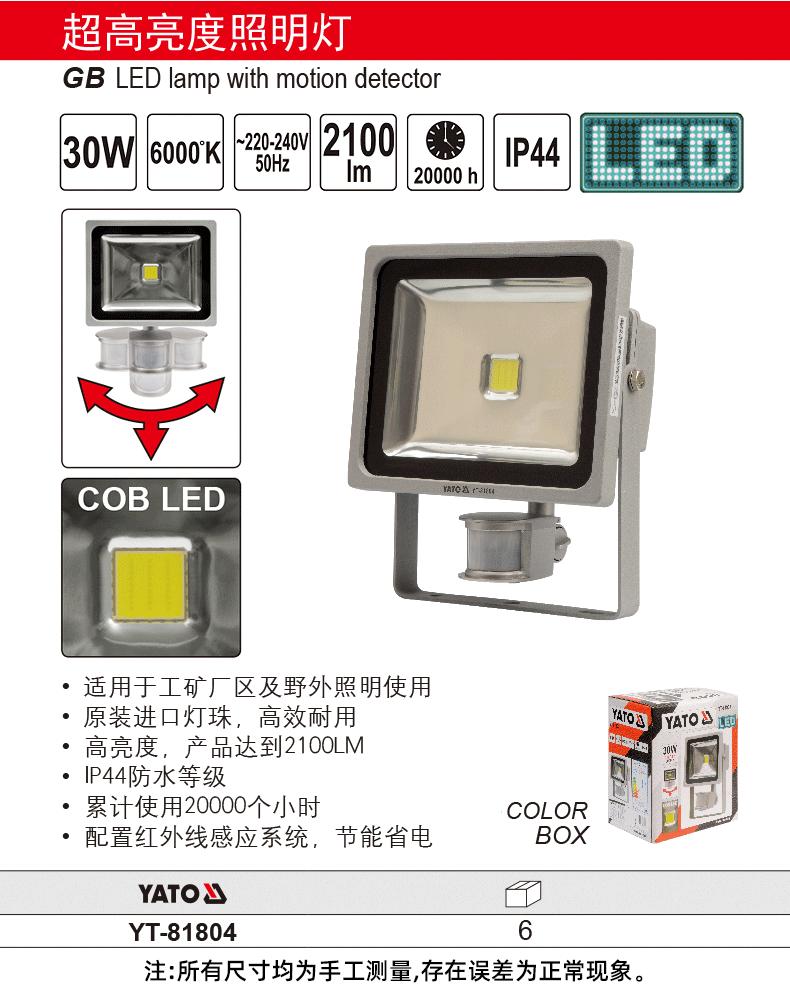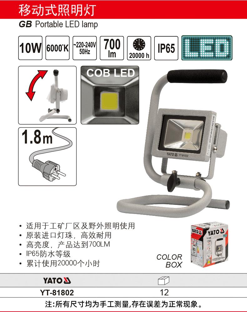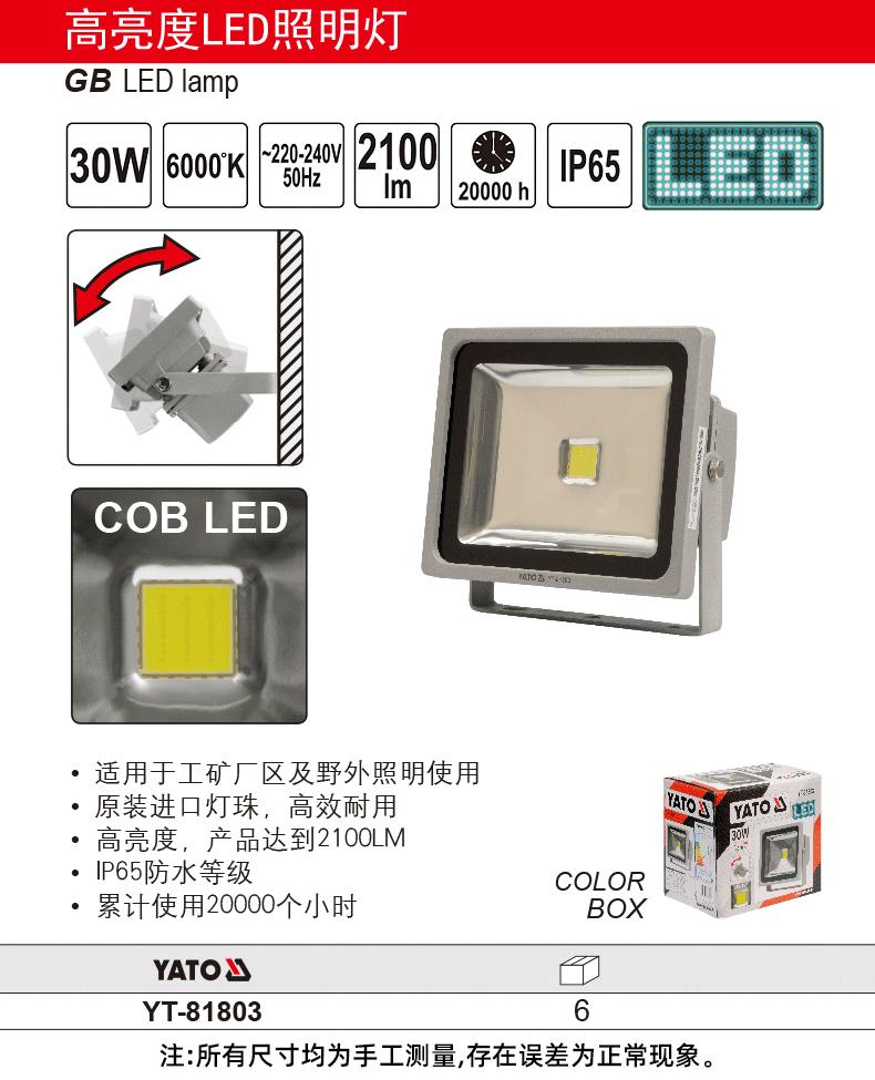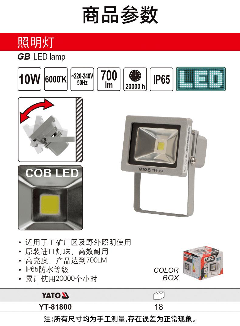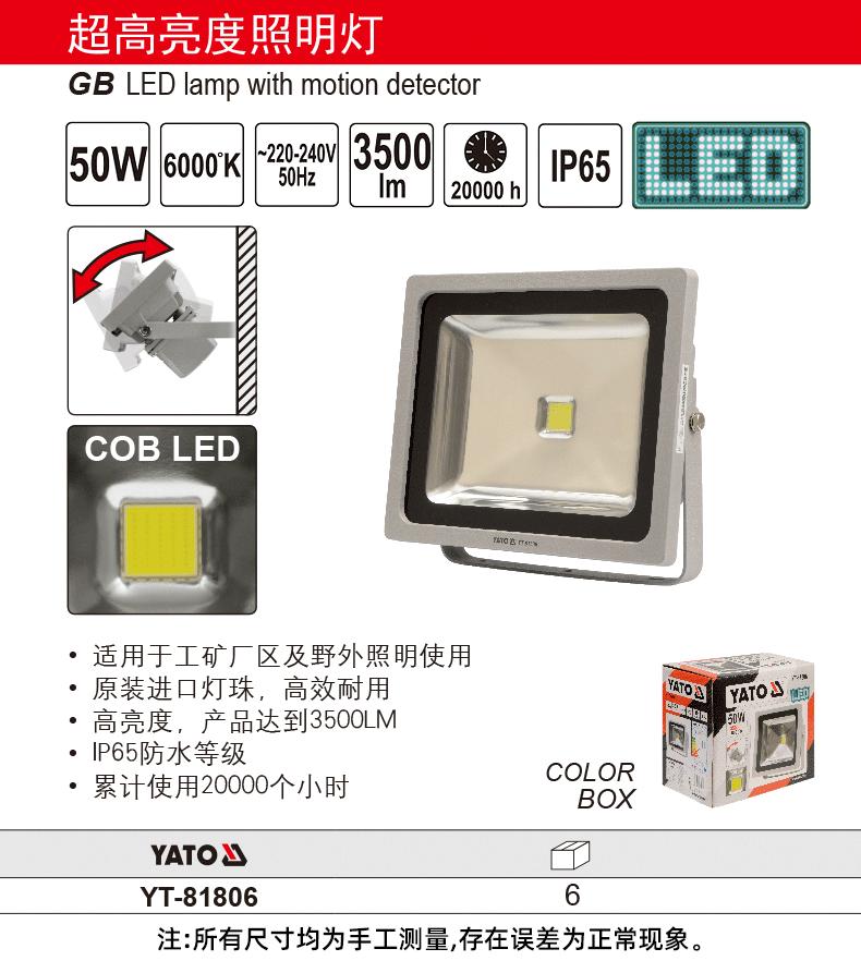 Yato Reflector LED Impermeable Super Brillante Luz Fuerte Exterior Taller Sitio de Construcción Fábrica Iluminación Trabajo Foco de Búsqueda
