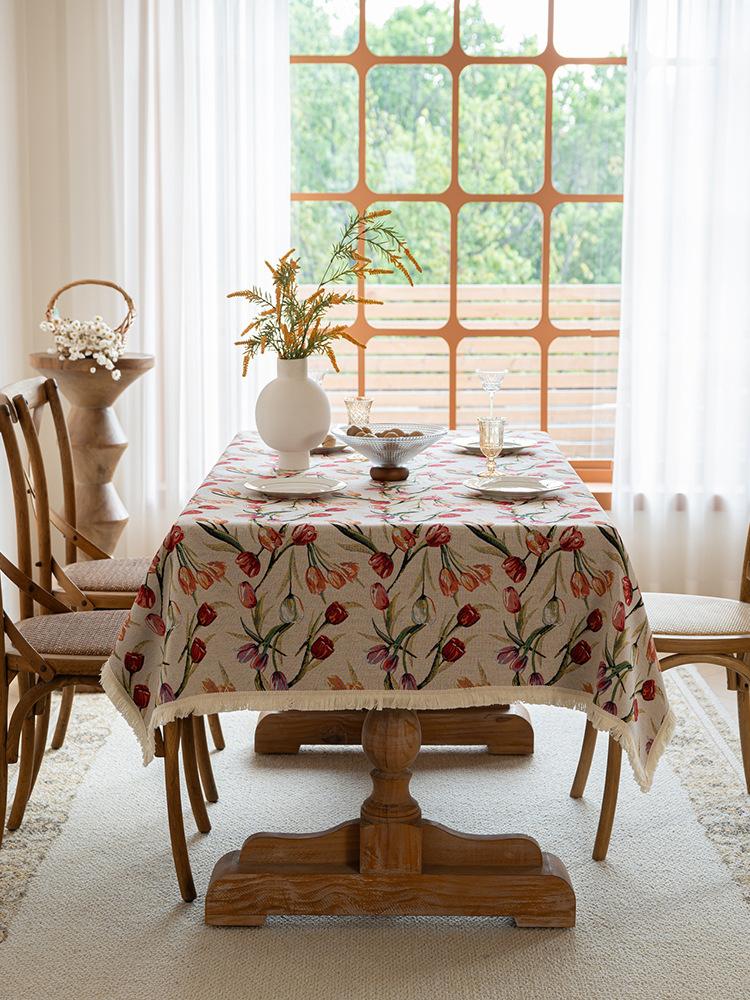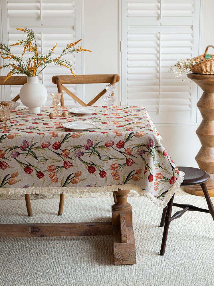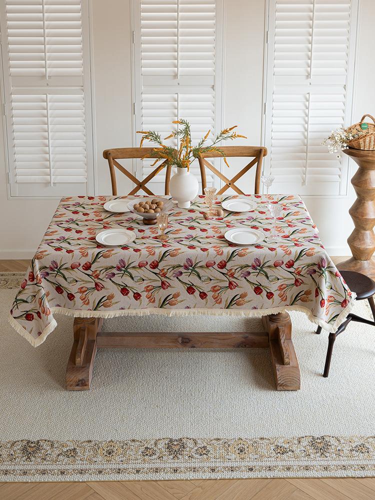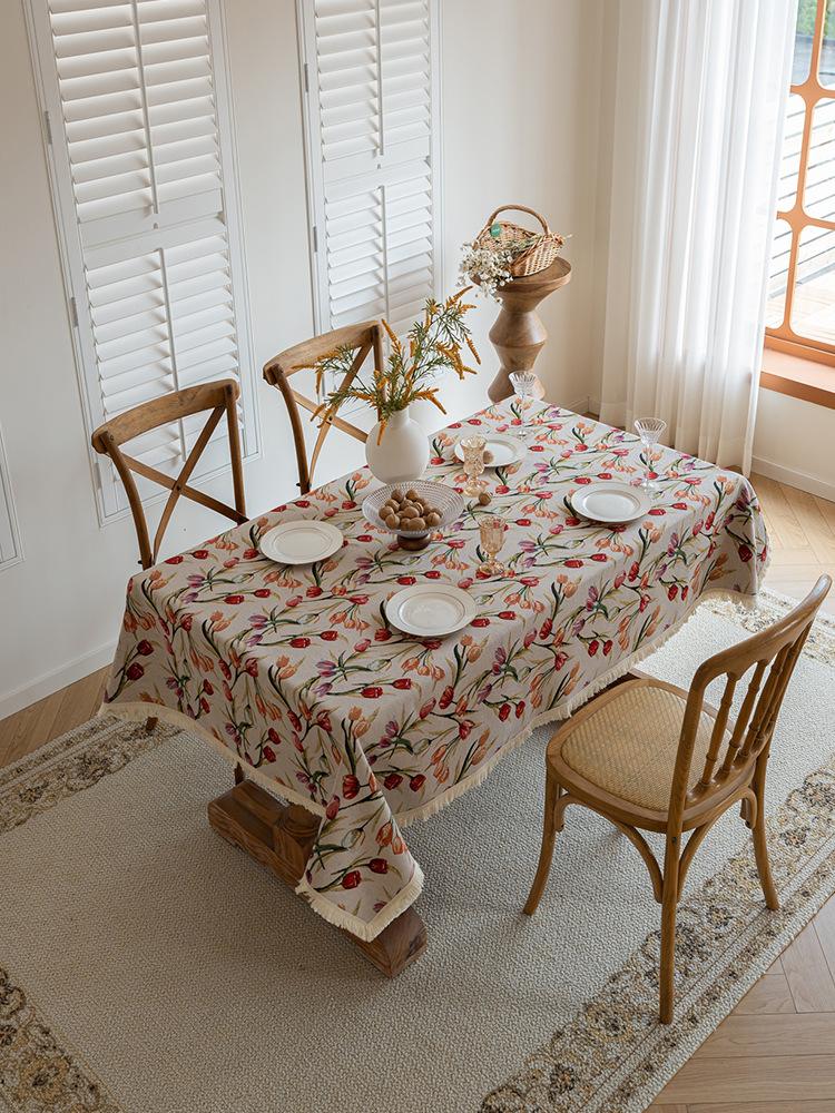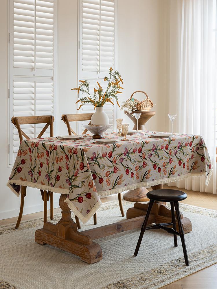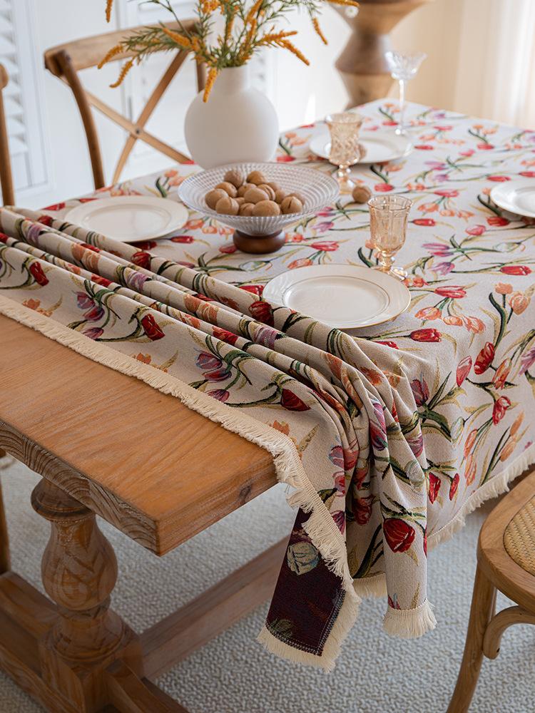 Mantel Americano Retro Estilo Pastoral Mantel para Mesa de Café Mantel Rectangular Mantel de Algodón y Lino Tela Jacquard