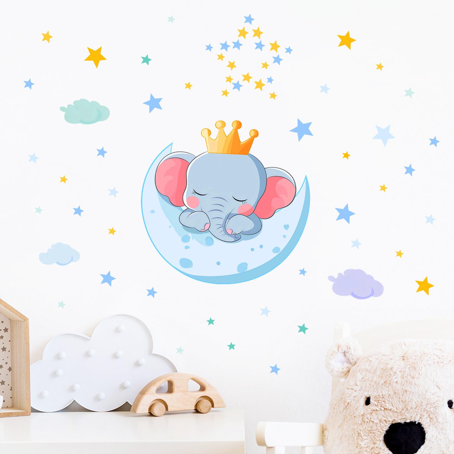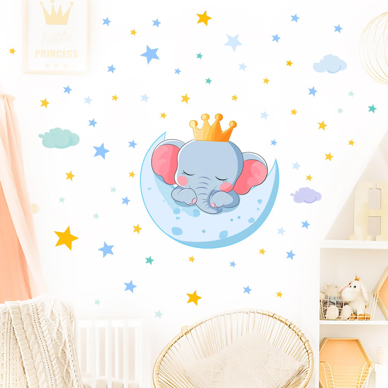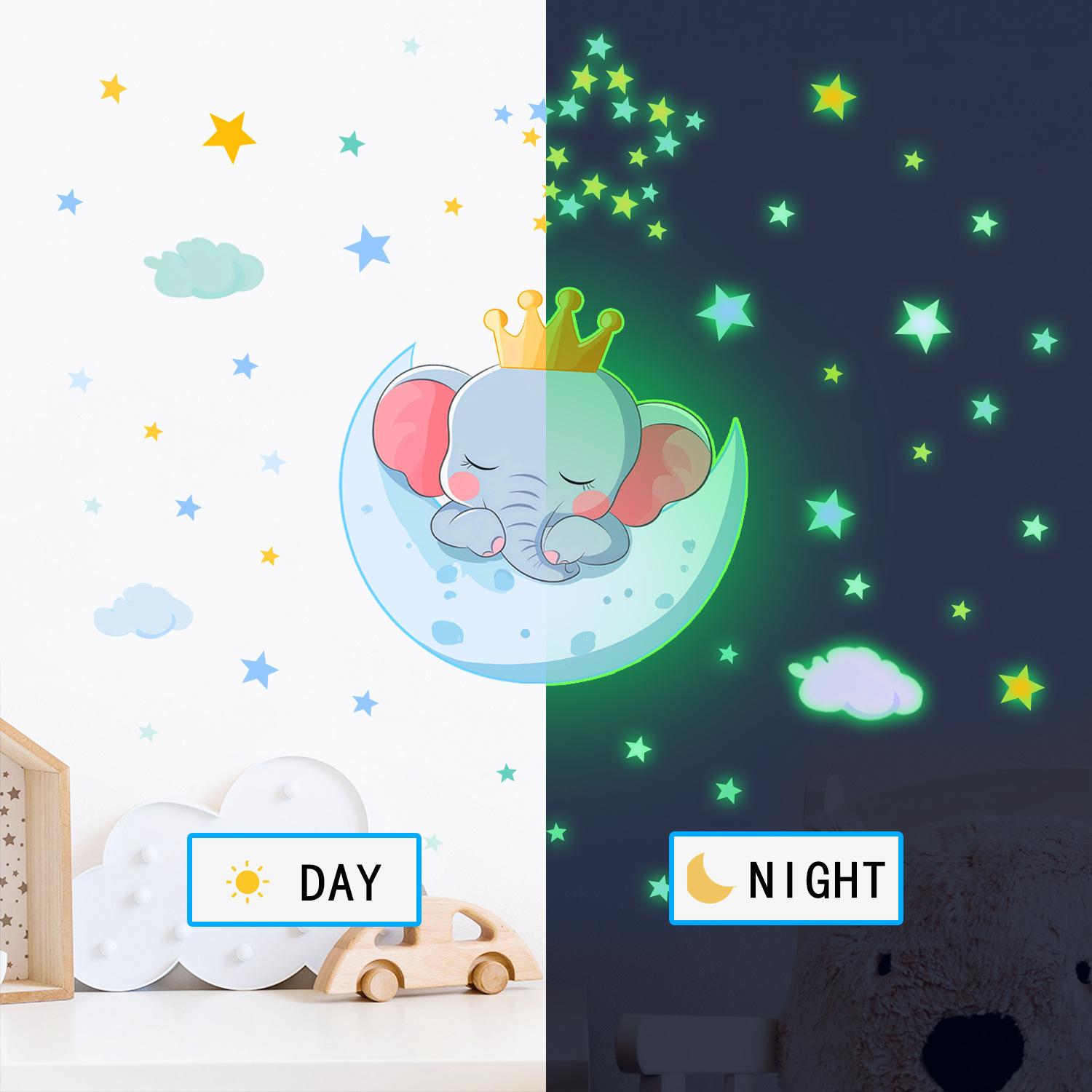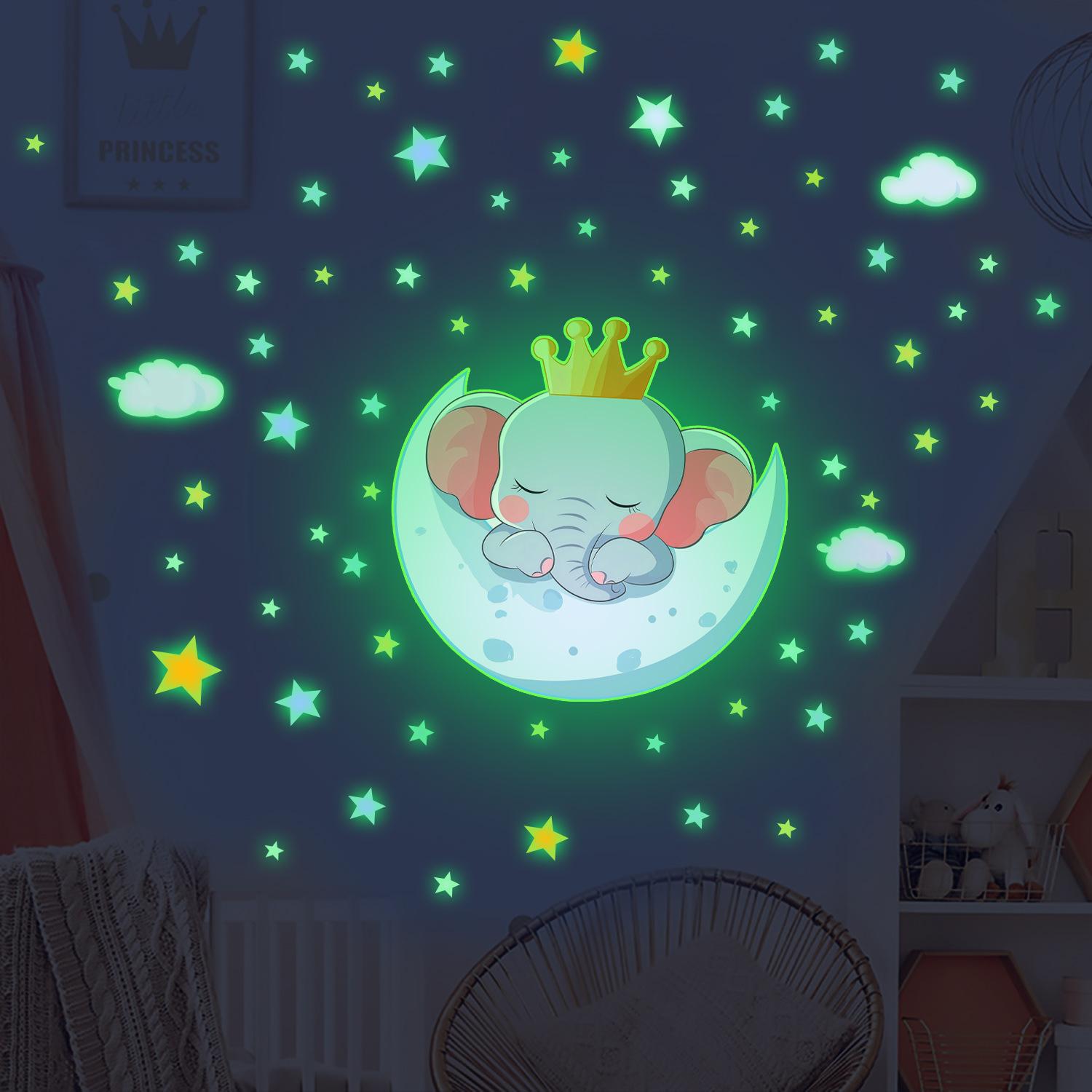 Adhesivos Luminosos de Elefante Lindo y Luna Comercio Exterior Transfronterizo Amazon Embellecimiento del Hogar Pared Autoadhesivos de Pared