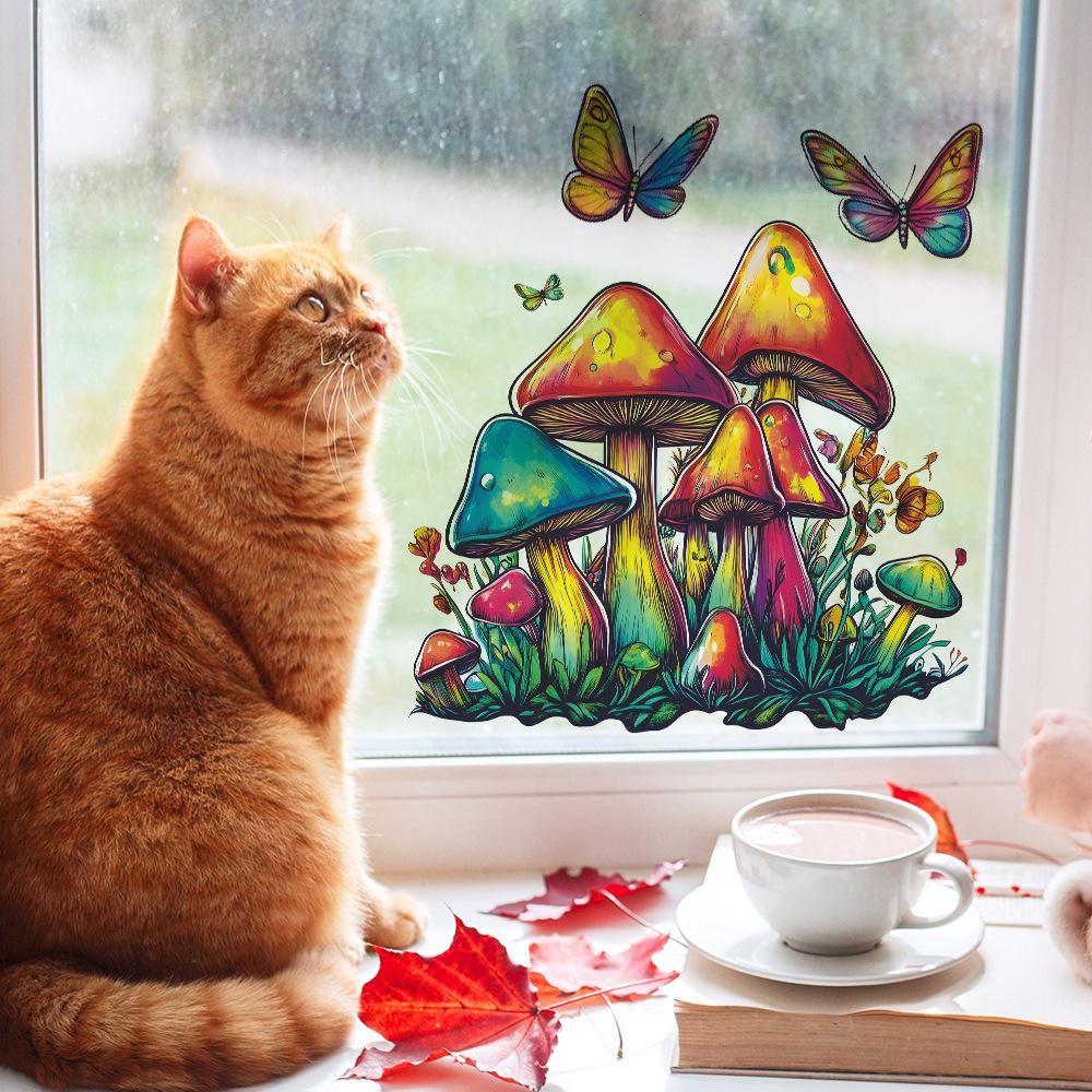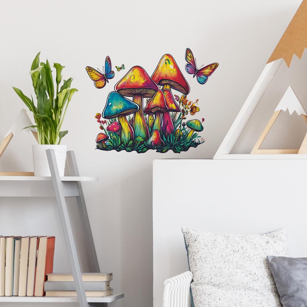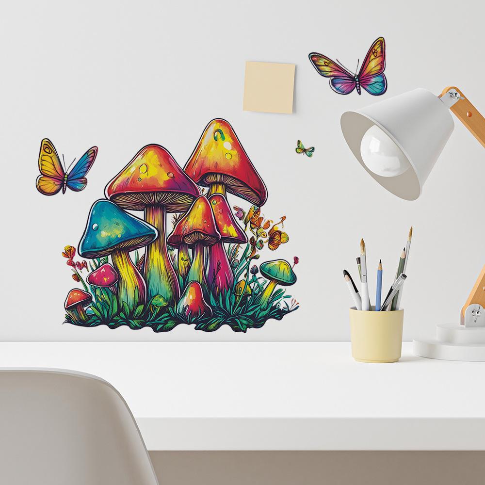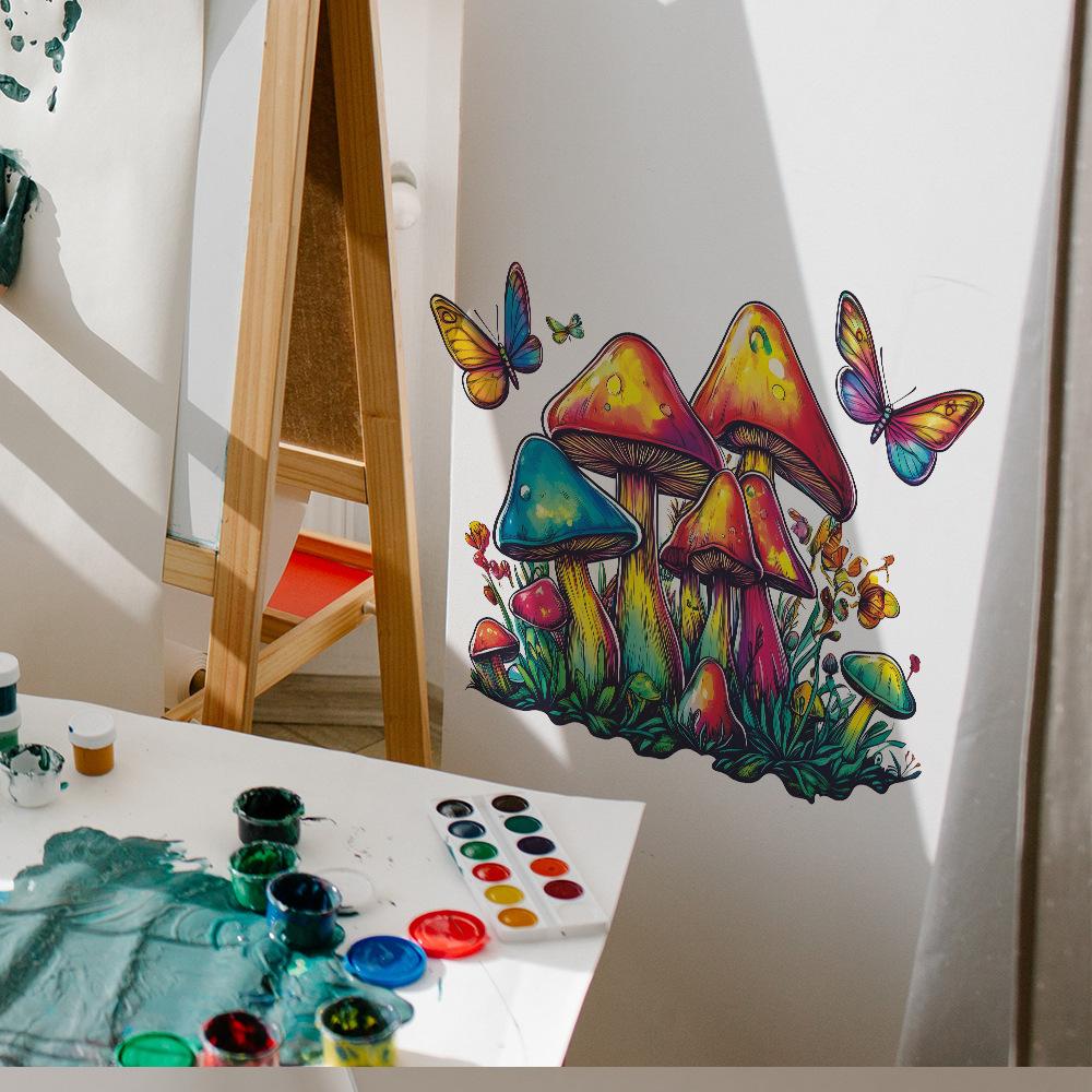 Comercio exterior colorido hongo mariposa dormitorio sala de estar porche armario dormitorio decoración del hogar pegatinas de pared autoadhesivas al por mayor