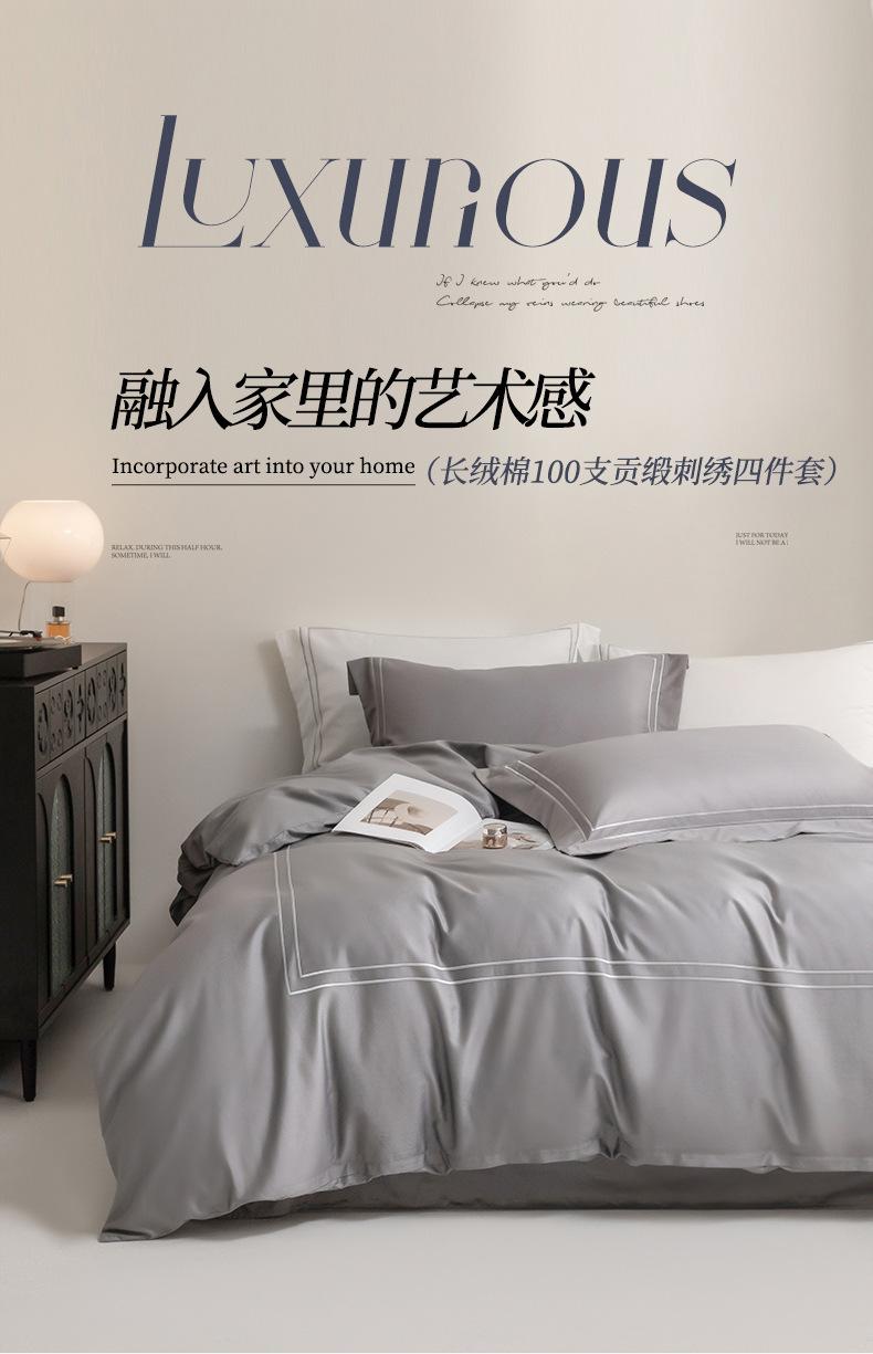 Compra Juego de cuatro piezas de algodón de fibra larga 100S estilo hotelero, funda de edredón sencilla bordada de algodón, sábana de cama de algodón puro, ropa de cama al por mayor 4 al por mayor en Joom.pro