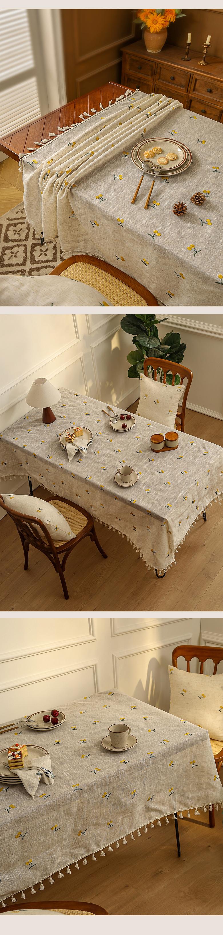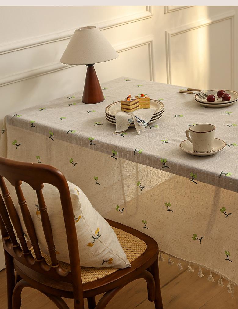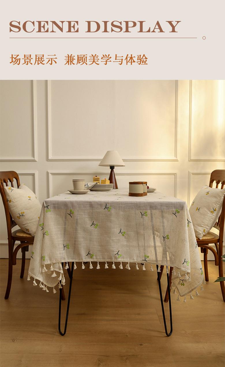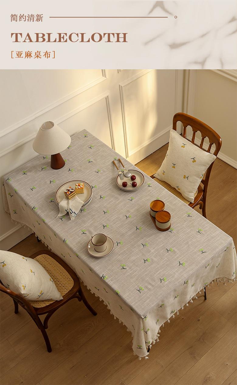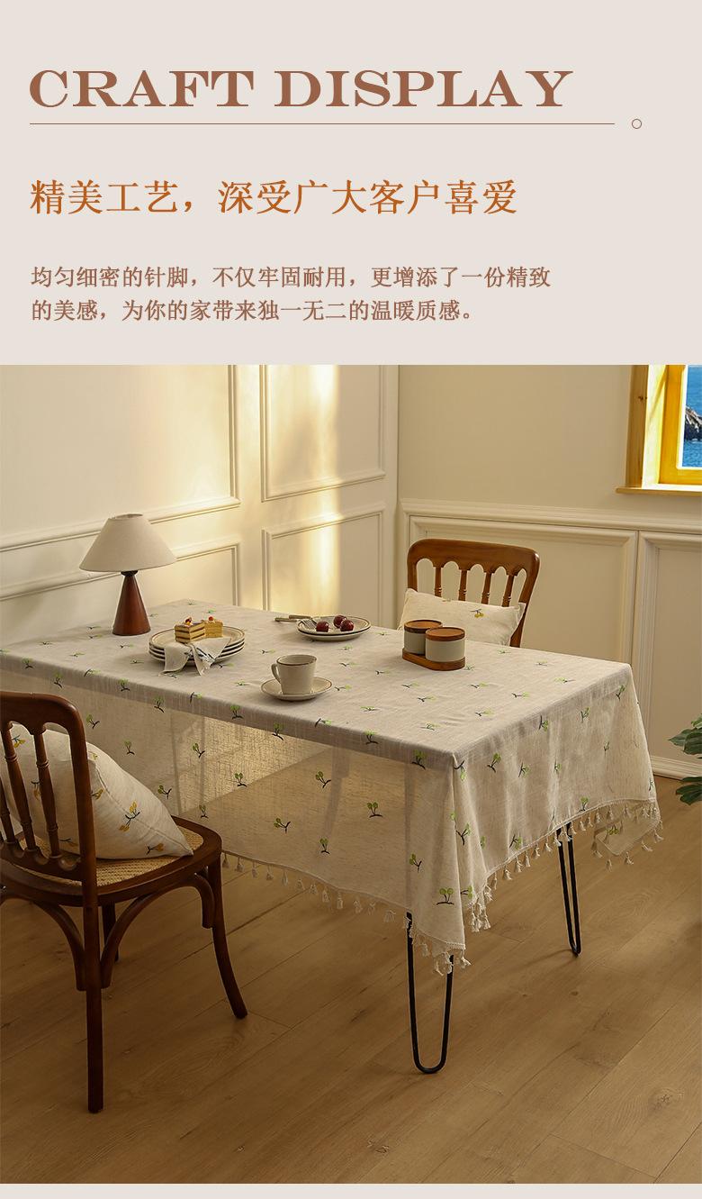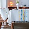 Bordado de Lino Transfronterizo Fresco Simple Borla Mantel para Mesa de Comedor Mesa de Centro Cubierta de Mantel para Puesto Casero Toalla Paño a Prueba de Polvo