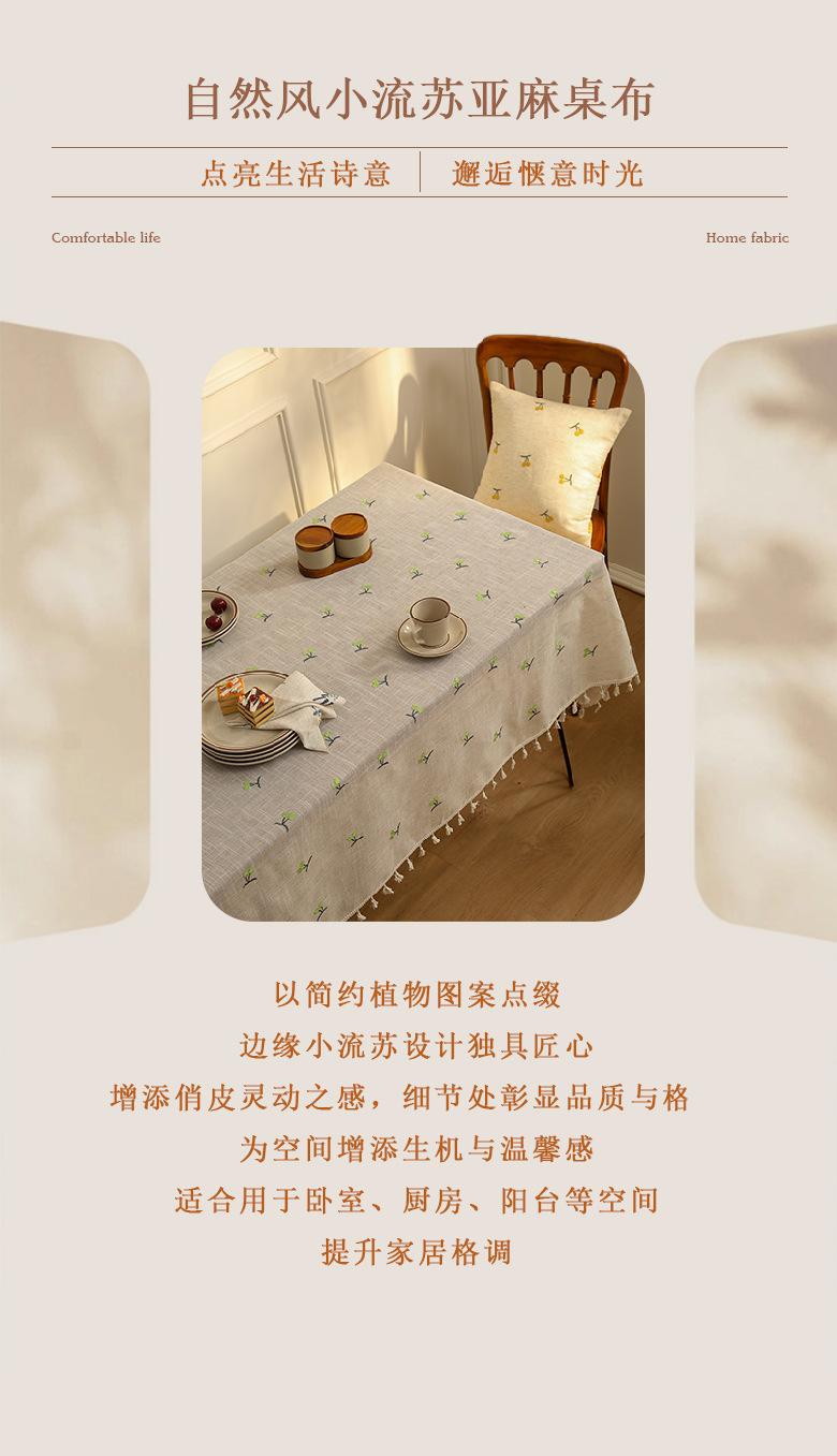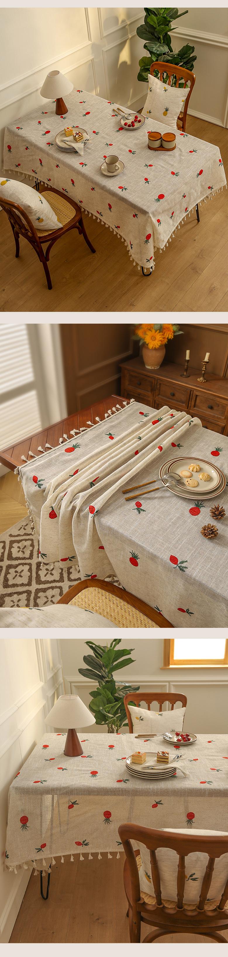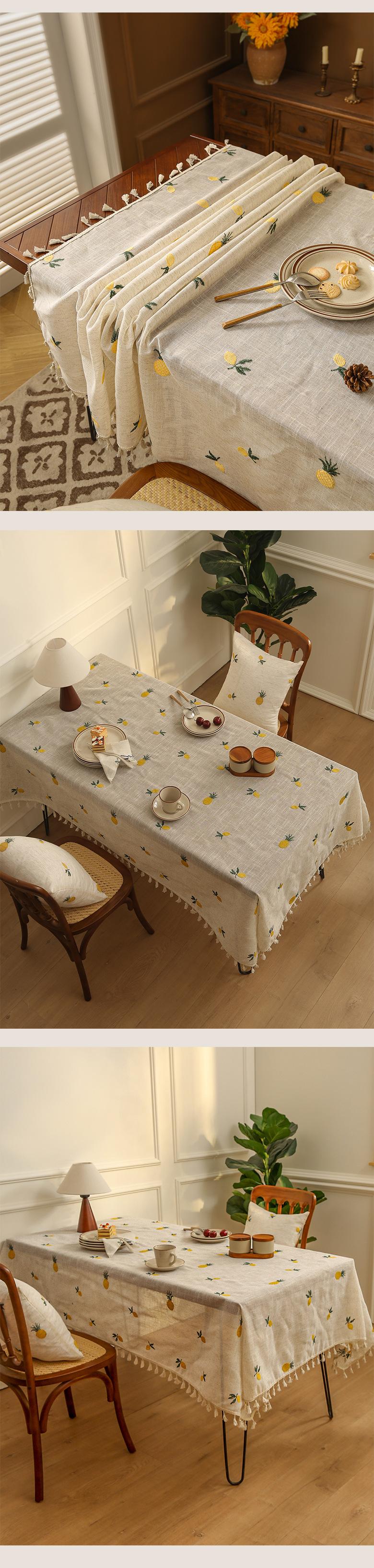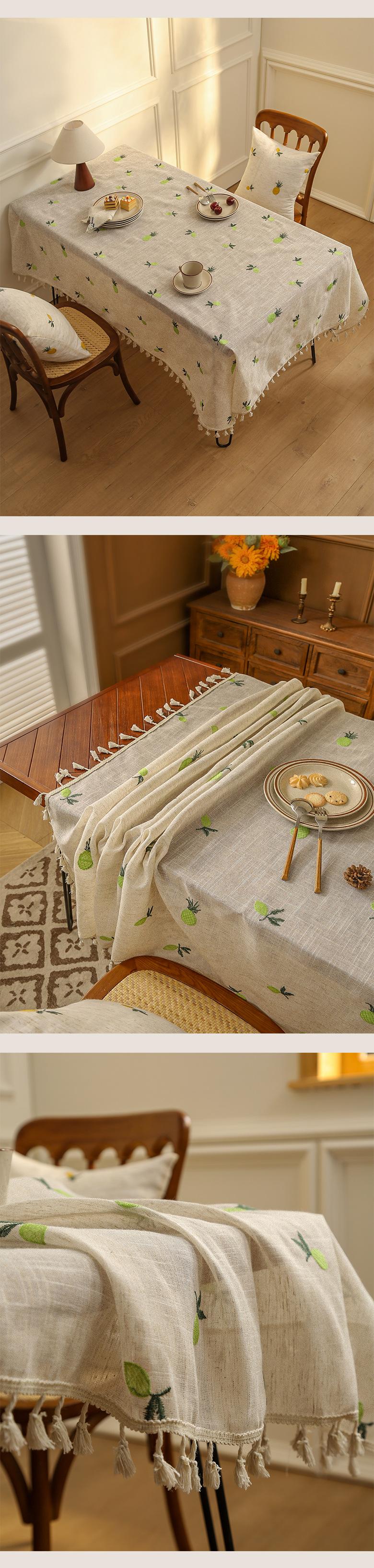 Bordado de Lino Transfronterizo Fresco Simple Borla Mantel para Mesa de Comedor Mesa de Centro Cubierta de Mantel para Puesto Casero Toalla Paño a Prueba de Polvo
